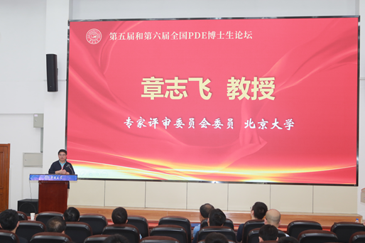 章志飞教授代表论坛专家评审委员会致辞,祝贺第五届和第六届全国偏微分方程博士生论坛顺利开幕。他鼓励青年学者要潜心研究,努力钻研,探索前沿问题,勇攀科学高峰。他代表论坛专家评审委员会感谢各位专家学者对全国偏微分方程博士生论坛的关注与支持,论坛专家评审委员会将再接再厉,全力做好优秀博士论文的评选工作。