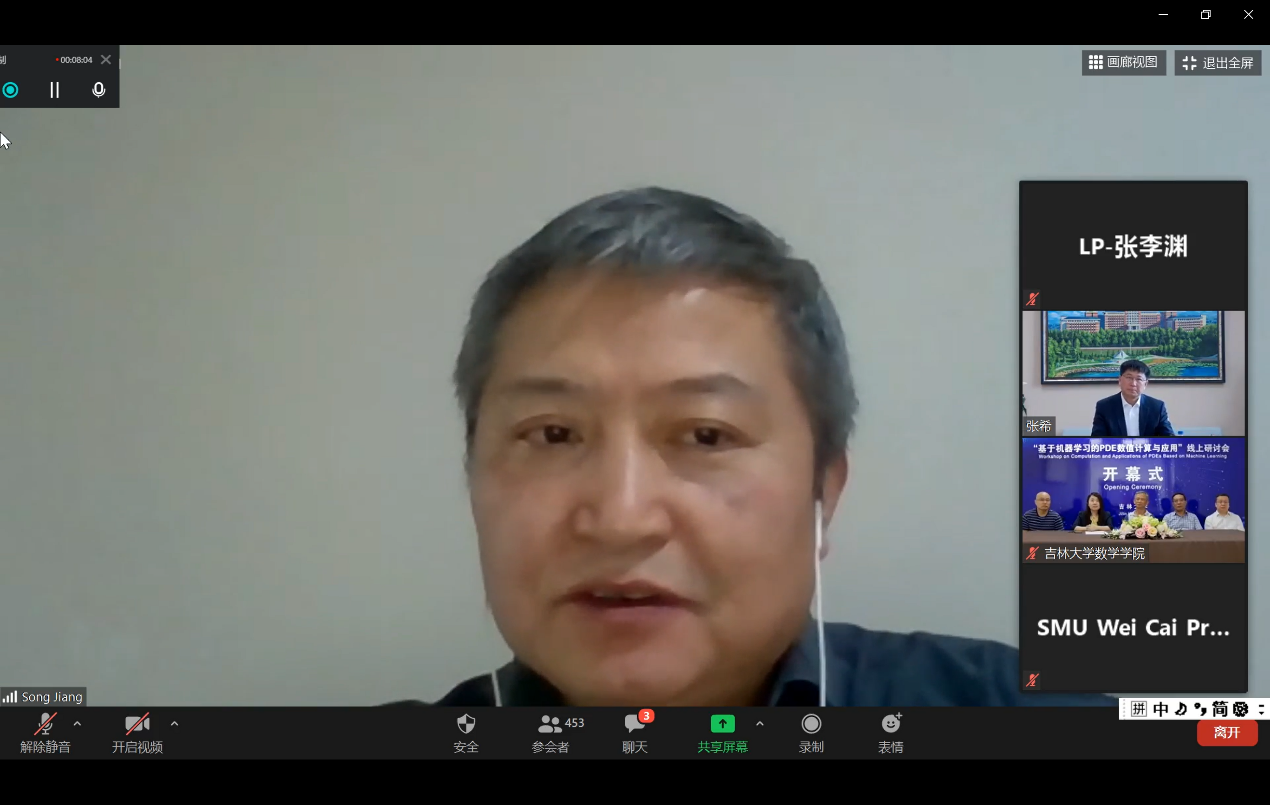 Jan S. Hesthaven教授、上海交通大学金石教授、北航刘铁刚教授、俄亥俄州立大学修东滨教授等17位来自国内外高校的顶级数学家和青年学者做了精彩报告,深度研讨基于机器学习的偏微分方程数值算法的关键问题,共同寻求偏微分方程数值算法在诸多应用领域的解决方案。与会的学者们通过线上语音或留言提问,专家们在线实时解答,互动场面热烈、交流深入。