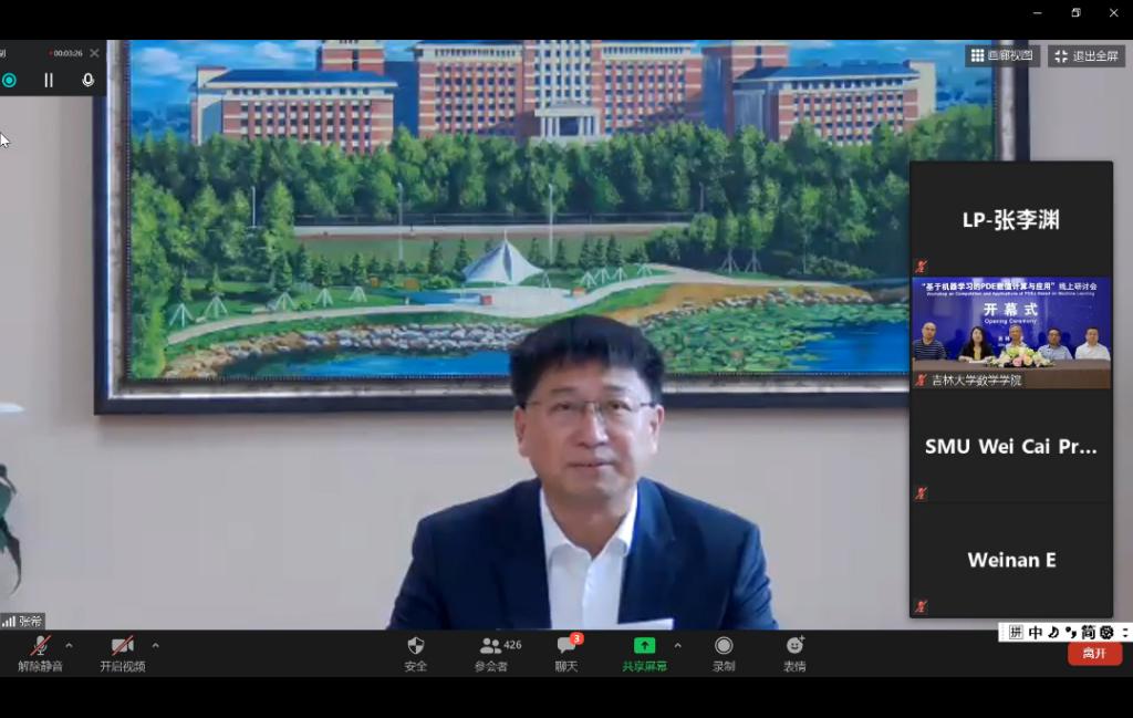 校长张希院士,基金委数理学部主任江松院士出席了线上研讨会开幕式并致辞。
