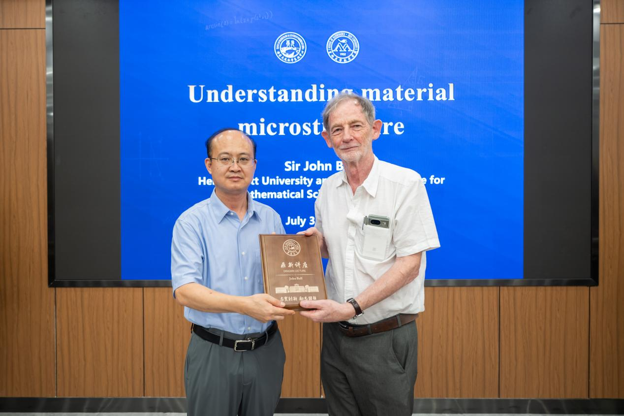 副校长张国兴教授出席讲座并为John Ball教授颁发“鼎新讲座纪念牌”。