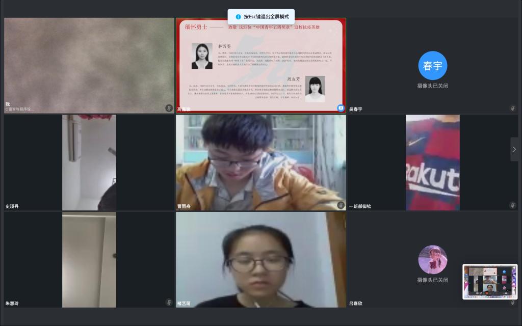 接下来,唐佳琦、胡美冰等同学分享了大家的假期见闻与学期总结。本学期由于疫情影响,虽然不能在香蕉视频 上课,但通过网课以及各种辅助学习方式,大家依然没有停止学习的脚步。除此之外,大家更因为一个人在家掌握了做饭等生活技能。班会的最后,大家一起抒发了对线下学习的向往,对疫情结束的期盼,与对同学们的想念。