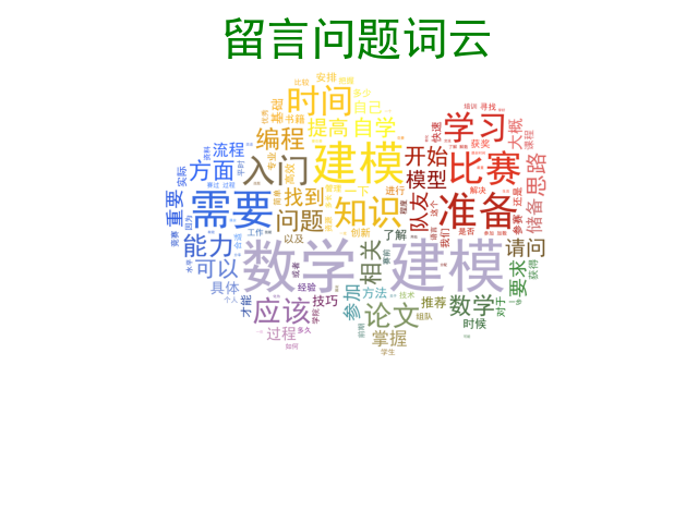 大会开始后,主持人先将大家所关心的焦点问题提炼成词云图,直观地呈现在主讲同学面前。随后,王佳宇、宋志翔、欧炜庭、纪量、张荣德、贾林瀚、徐勐、谢子怡、任奕璇等九位曾在国赛或美赛中获奖的同学上台针对性地分享建模经验。这些同学来自多个香蕉视频 他们用独特的观点分享了自己的经历并提出多项可行建议。