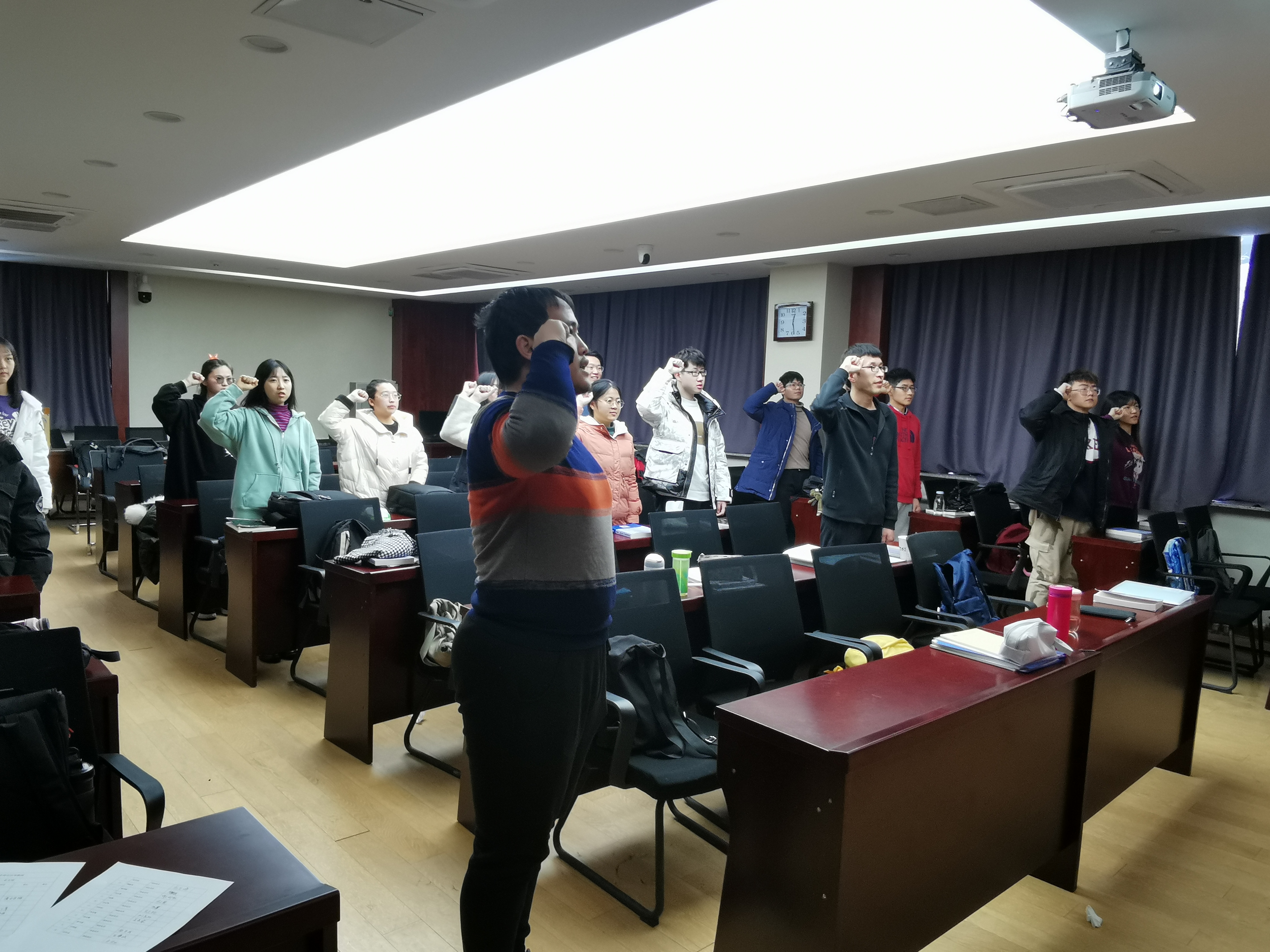 香蕉视频 本科生党支部于2020年1024日中午在数学楼报告厅举行入党宣誓仪式。参加入党宣誓仪式的为本科生党支部全体党员、预备党员,支部所署入党积极分子、发展对象列席会议。