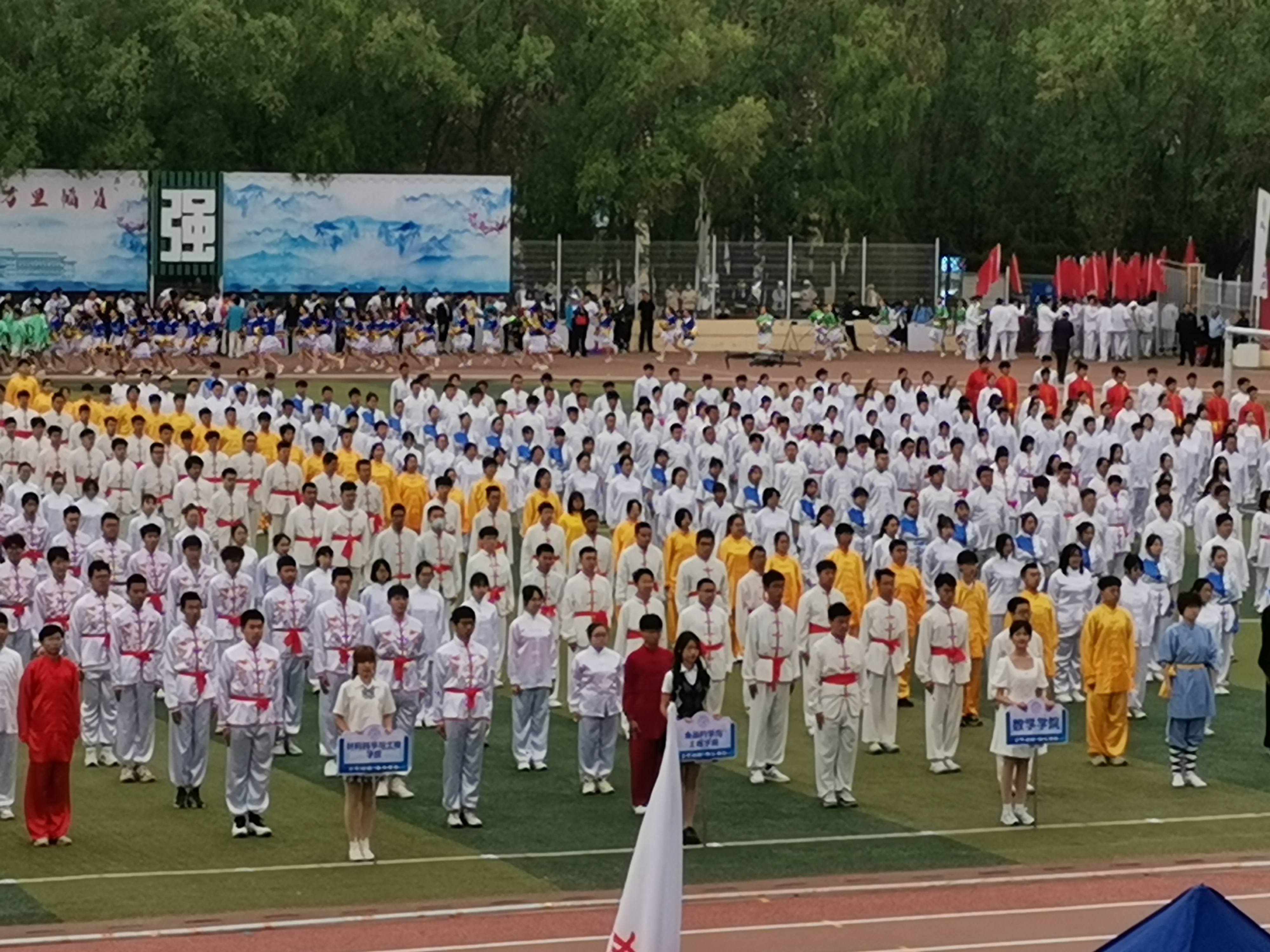 5月28日早上7点50分,参加八极拳展示的所有队伍,井然有序的在田径场入口处排好队伍,等待着老师的入场指令。在所有方队结束之后,整装待发的数院学子,迈着整齐划一的步伐,走向前方。天空中虽下着蒙蒙细雨,但数院学子依然保持着高昂的青春斗志。矫健的身姿,自信的步伐,书写出数院学子的光辉与荣耀。随着所有成员的就位,八极拳展示活动正式开始。铿锵有力的步伐,仿佛有气吞山河之势,赢得了全场无数次热烈的掌声,数院学子精神饱满,气宇轩昂,用行动完美诠释了八极精神!伴随着收势后响彻云霄的五声“哈”,八极拳展示活动圆满结束。