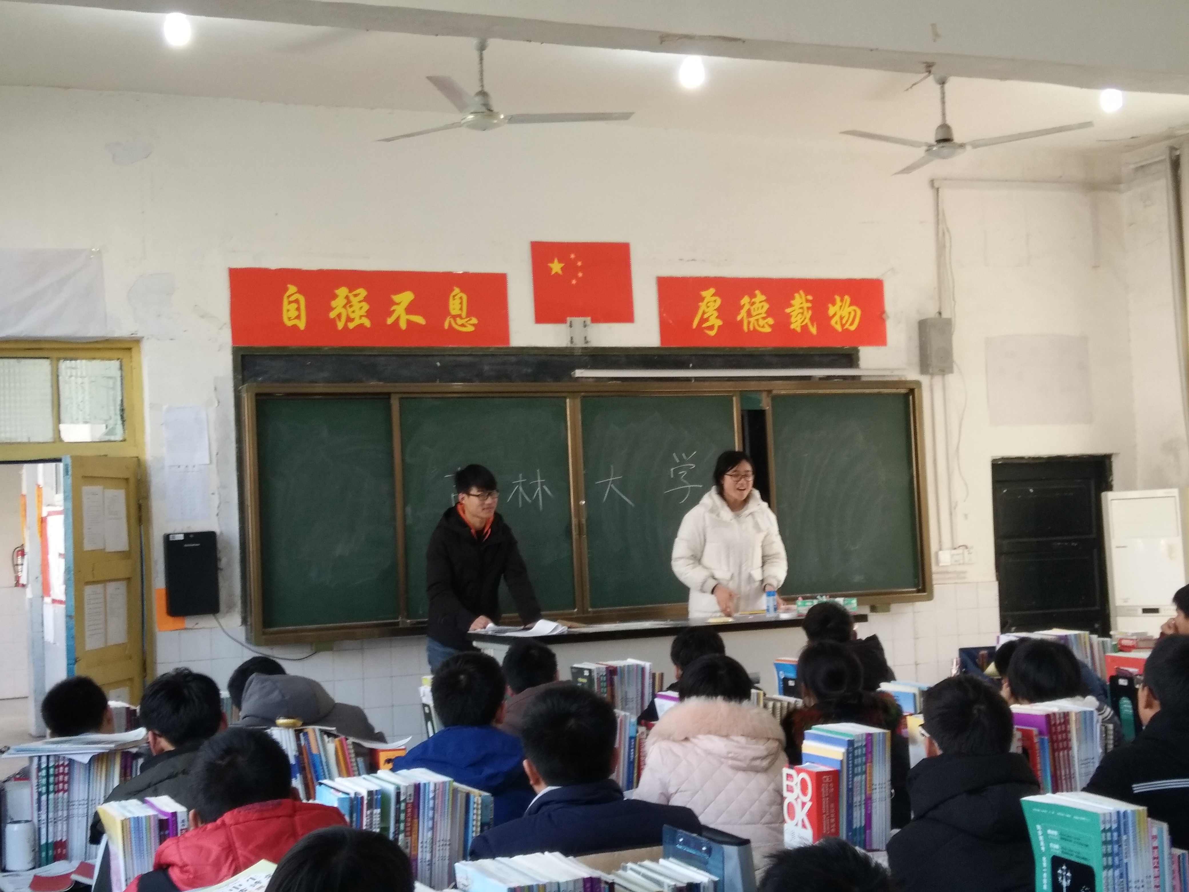 101609团支部在寒假期间分别派出十支宣讲队伍前往安徽省巢湖市第四中学、河南省淮阳中学、黑龙江省鹤岗市第一中学、吉林省延边州第二高级中学、江西省上饶市上饶中学、吉林省吉林市第一中香蕉视频
