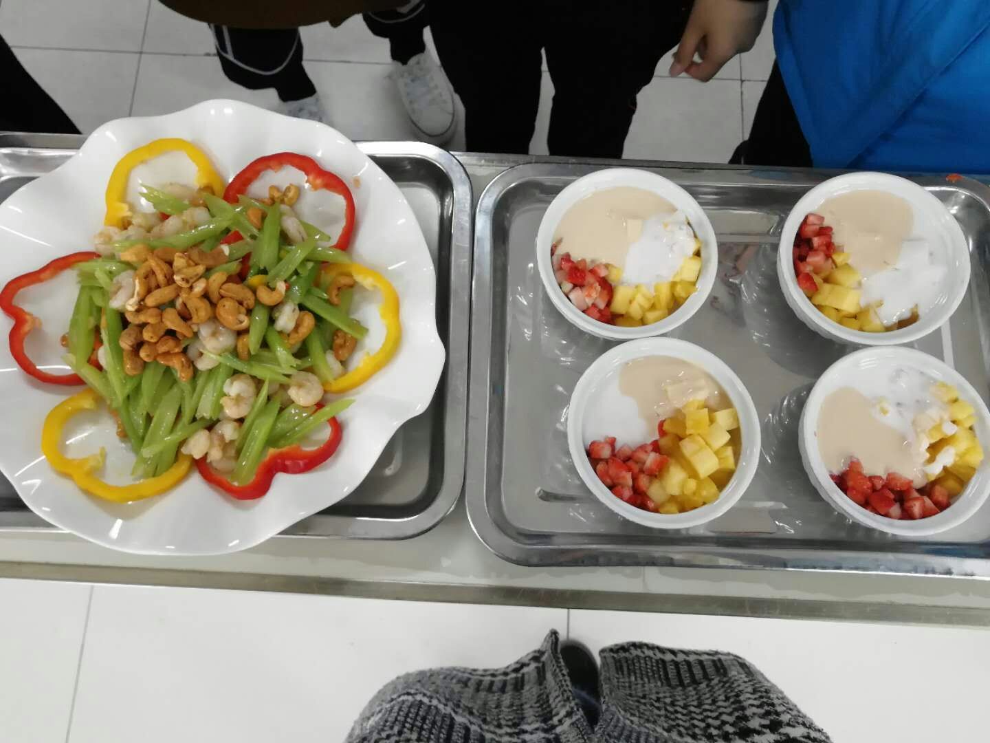 大家再次来到了后厨,观看大厨们一展身手。拔丝山药、拉面哥的拉面、甚至还有在新食堂一号难求的雪衣豆沙等平时难以吃到的美味,让小吃货们一脸满足。小编印象最深的就是拉面哥那“剪不断理还乱”的拉面啦,有细面与宽面两种,虽然只放了最简单的盐等基本调料,甚至连点缀也没有,但是那弹弹的面吃进嘴里,却胜过千滋百味。享受完美味之后,评审团根据现场比拼小组们的菜品的色泽、营养、摆盘和味感质感给出了公正的评分。最终,冠军产生!现场比拼:冠军:百鸟朝凤,亚军:素香虾仁,季军:咖喱遇上鸡。