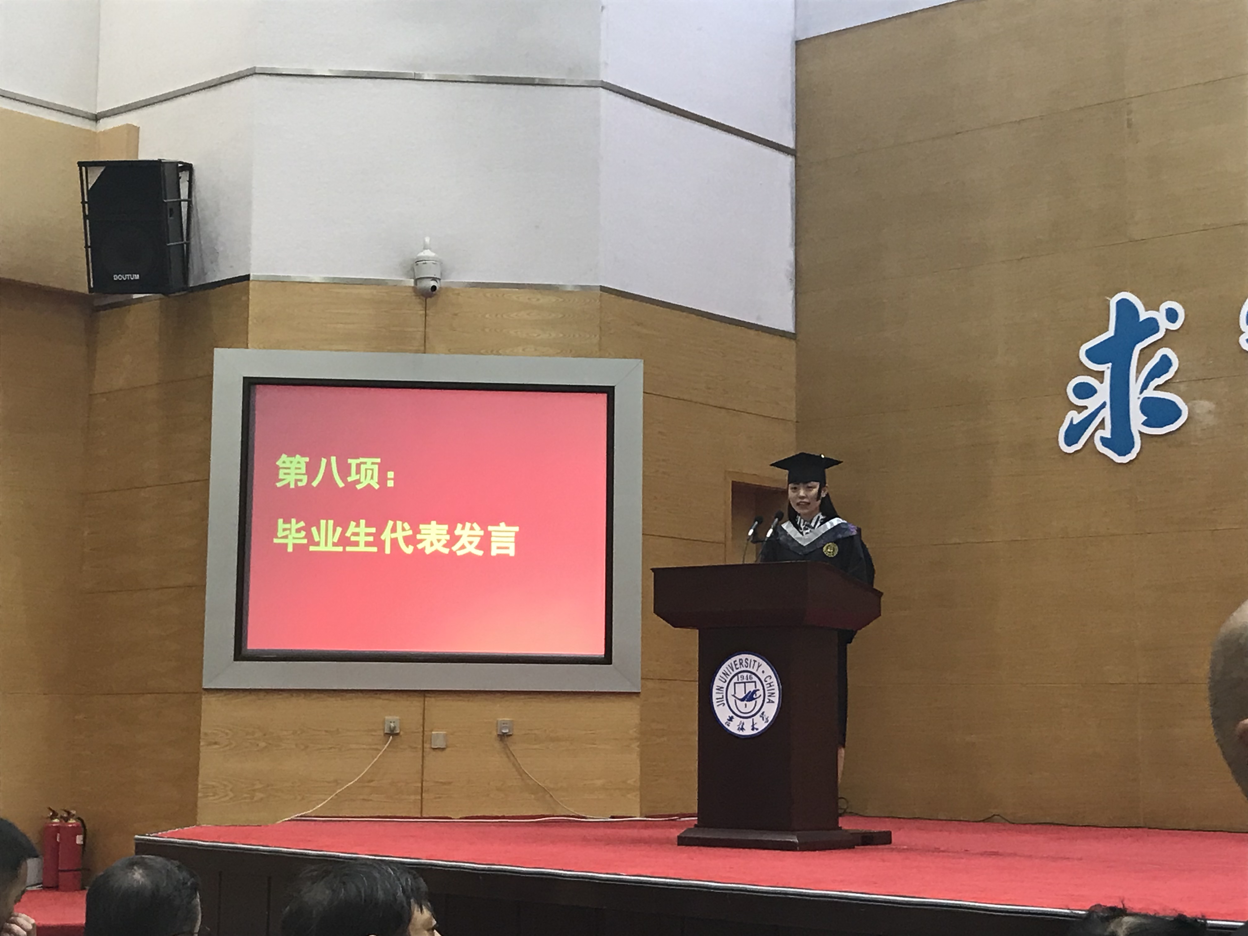 十佳大学生高溪远同学代表毕业生发言,韩玉柱副教授作为教师代表为毕业生送上祝福。最后,李辉来院长为毕业典礼致辞,向2018届毕业生提出了殷切希望,希望从香蕉视频
