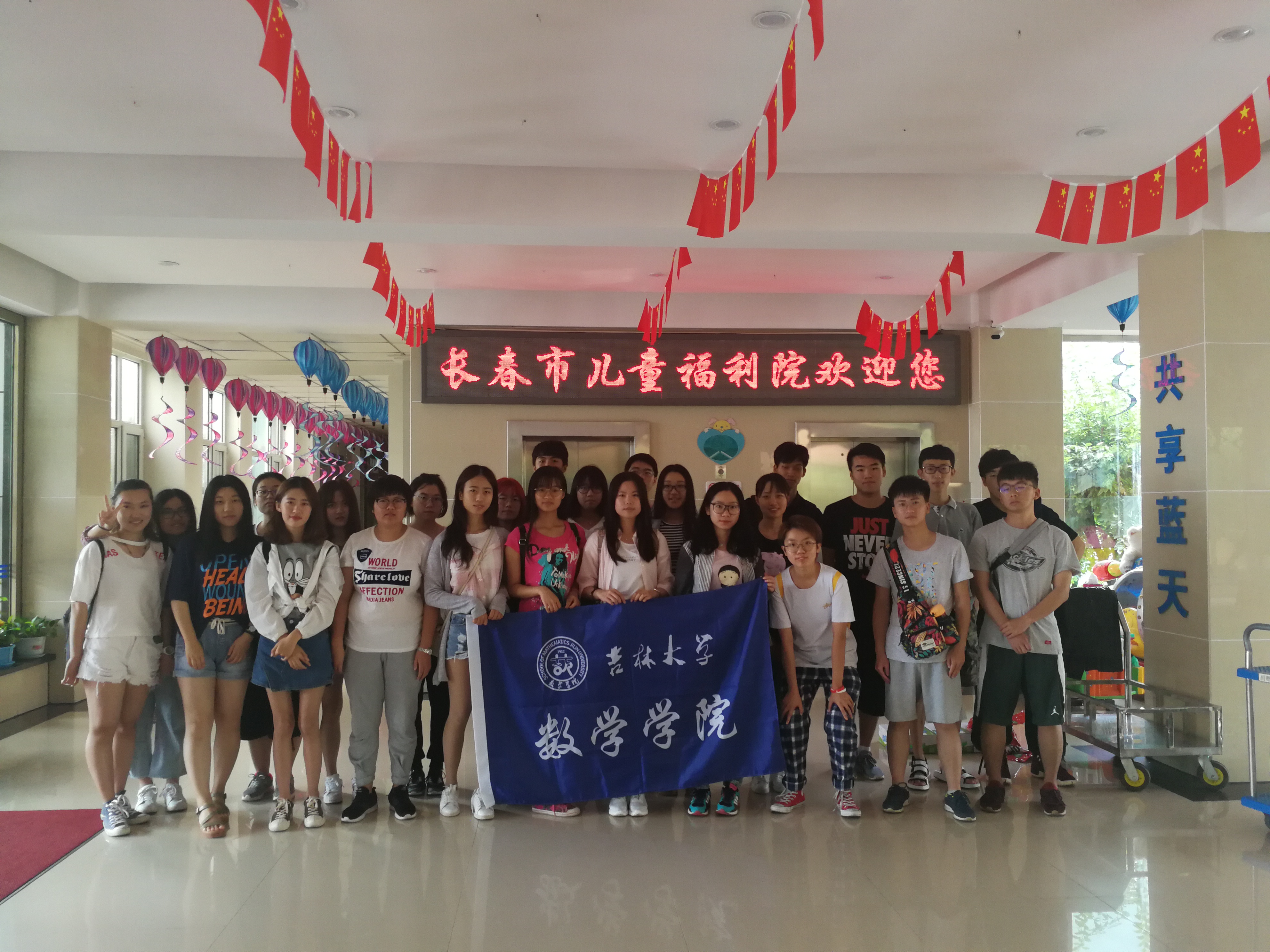 2017级统计一班同学组成的“爱心接力小分队”前往长春市儿童福利院关爱特殊儿童群体,为他们送去温暖和祝福,陪伴他们玩耍。