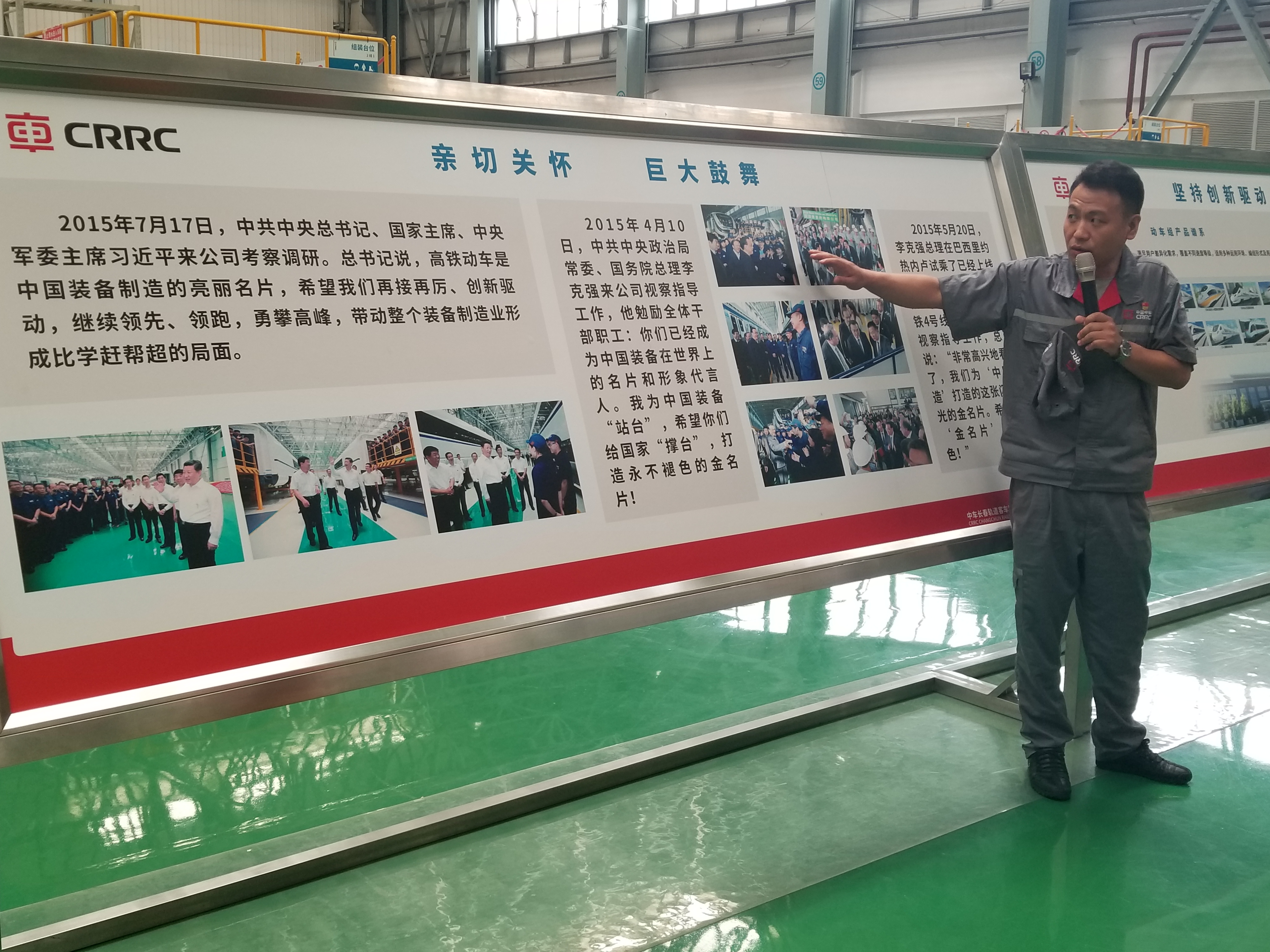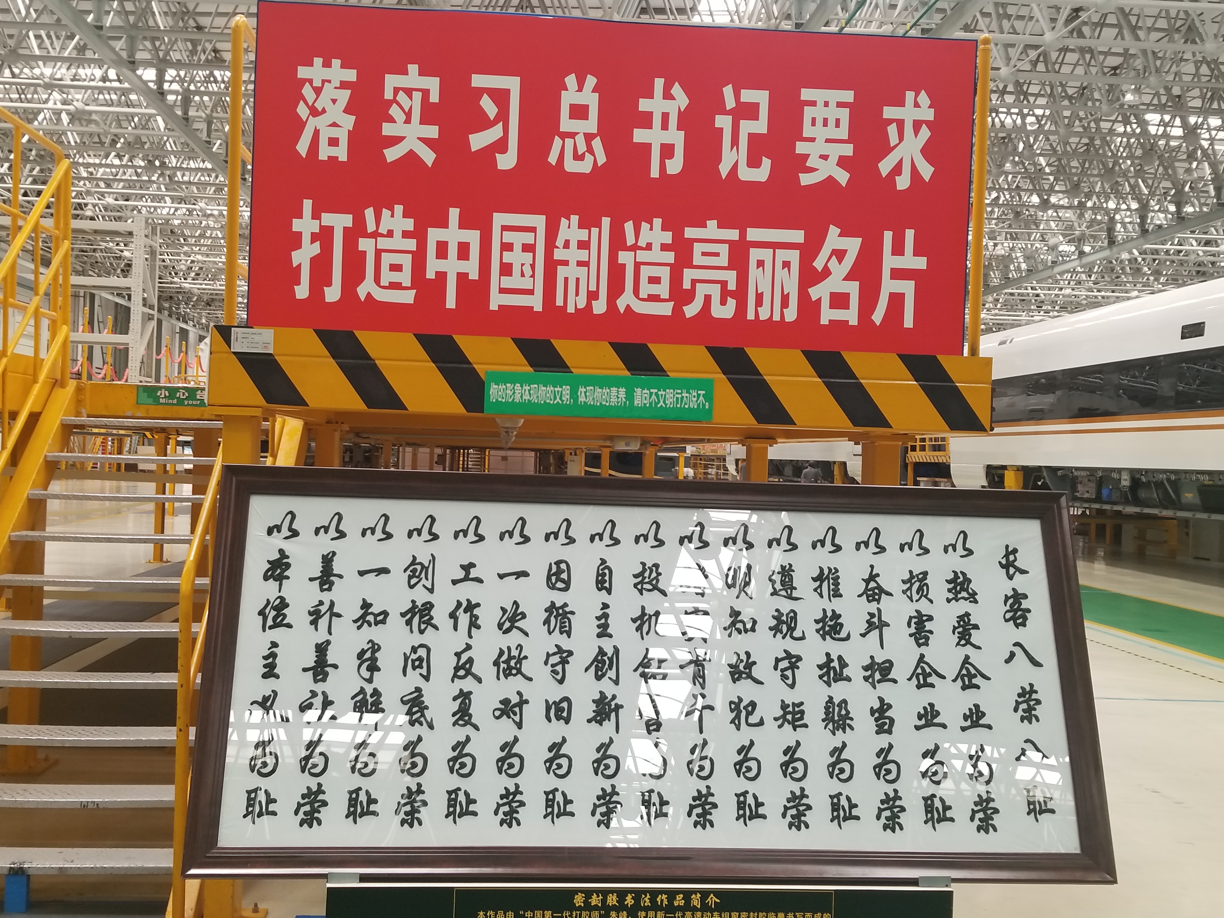 中车长客中是全球生产规模最大,产品种类最丰富的高速动车组制造厂家。同学们走进这高速车制造基地动车组装配车间,一列列高速动车如银龙卧海,通过李师傅的介绍,也看到了总书记来考察的足迹,我们得知制造业,特别是高铁中国所在的世界位置的领先,大家不但了解了这高铁“金名片”,更知道了这中国长客工作的小秘诀,其中 “一口清”给践行队的各位留下了深刻印象。工作人员将自己的工作编成顺口溜,足以证明长客工作之认真,业务之熟练。