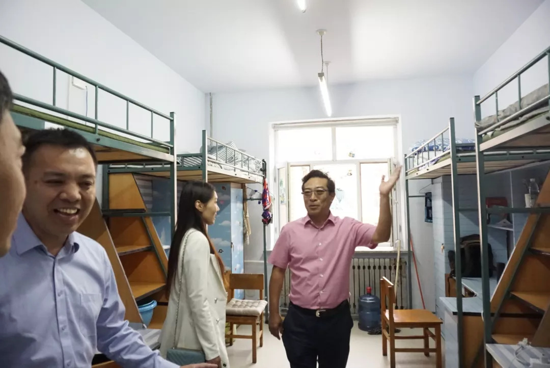 领导和老师们分别来到大学城2公寓和3公寓看望新生。此次出席的领导和老师是有院长李辉来老师,党委书记李晓光老师,副院长史少云老师,党委副书记兼纪委书记王欢老师,副院长陈续升老师,党委副书记兼副院长范庆文老师,新生辅导员曹馨月老师。