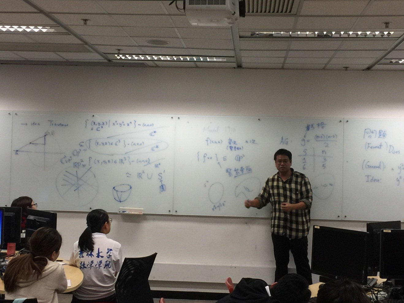 随后,Professor Huai-Liang CHANG为我们带来了讲座 “Arithmetic and Riemann Surfaces.”教授以其丰富的学识,使我们领略到,几何的魅力来自于思想,而思想是丰富的,是无穷无尽的,更是永不过时,永不落后的。而立足现今,我们需要解决问题,更需要提出问题,只有保持着求真,求知,求索的心,我们才能摆脱纷杂,静心研究,不断探索,不断前进。