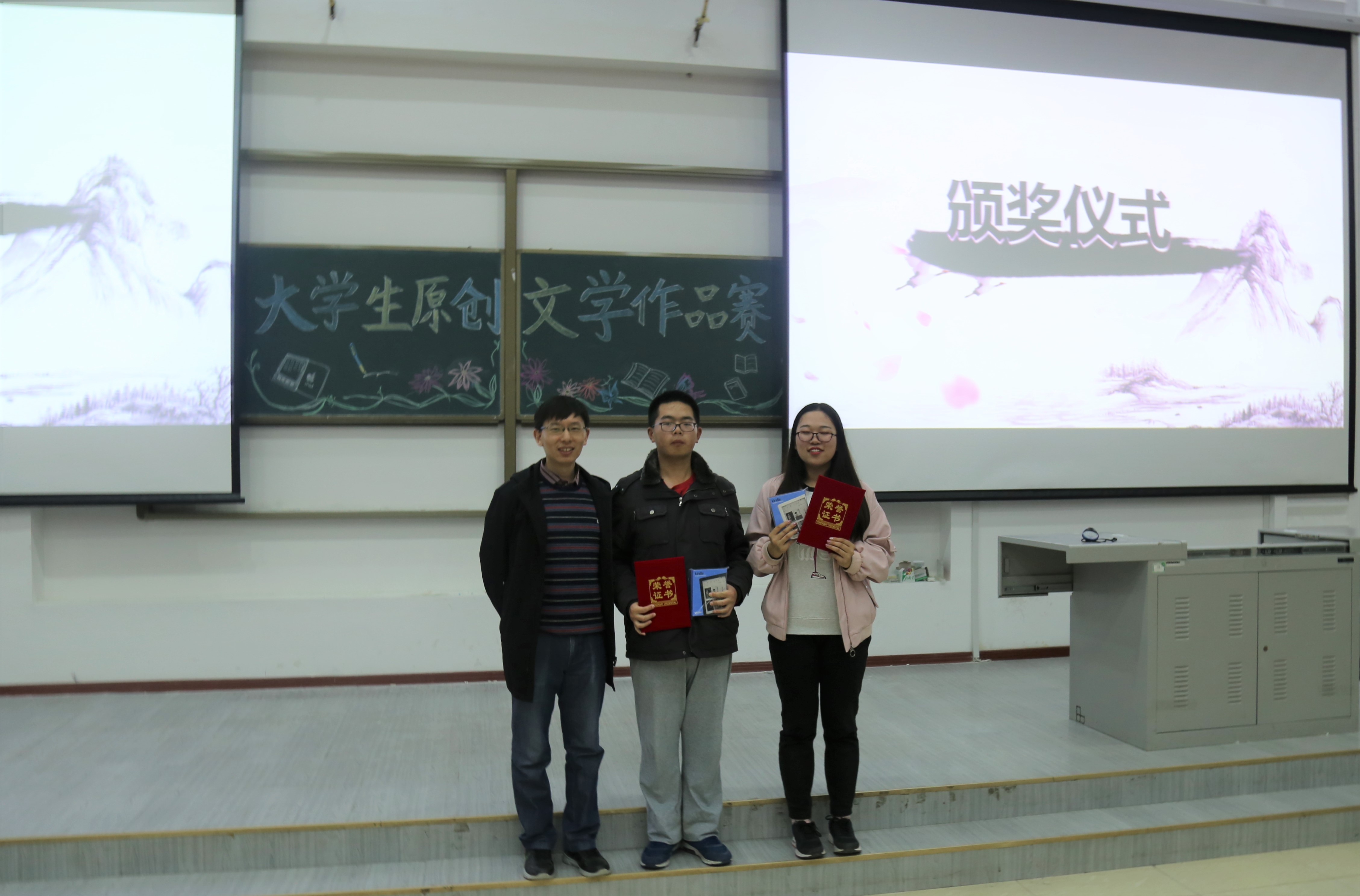 学生会副主席王锴强也上台同大家一起分享了自己对文学与数学两者相通性的一些看法。经过评委老师对第二轮比赛作品的打分,结合第一轮的得分情况,在激烈的角逐之后,主持人公布了此次原创文学作品大赛的最终结果。其中,向小吉荣获香蕉视频