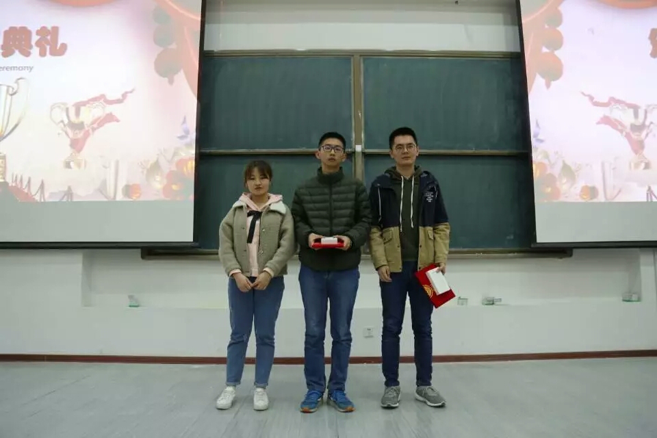 本次比赛参赛选手讲课风格各具特色,有的同学举例丰富、贴近生活,有的同学慢条斯理,从容不迫,有的同学随性恣意,别具一格;讲课内容亦是五花八门,数学分析,高等代数,空间解析几何,常微分方程等等,选手们思路清晰,表达清楚到位,并有自己的独到见解;讲课形式丰富多样,手写板书,板书或工整规范,或随性恣意;PPT辅助,PPT简洁明了,美观大方。讲台上的同学们神采奕奕,自信从容,大方得体,颇具老师风范。讲台下的观众亦是全神贯注,仔细聆听,收获颇丰。现场还设有趣味问答环节,同学们热情高涨,紧张思考,积极响应,纷纷举手回答问题。各位评委秉持着公平公正的原则为各位选手进行现场打分,评选出一等奖一名(17级马琰)、二等奖一名(18级吴岳霖)、三等奖两名(16级黄海涛 18级何易繁),分别由团委副书记郑旭东、团委副书记兼社联主席赵雯晗、新媒体中心主任兼学生会副主席王思梦为获奖选手颁奖。最后,各位评委,获奖选手及工作人员合影留念。至此,香蕉视频