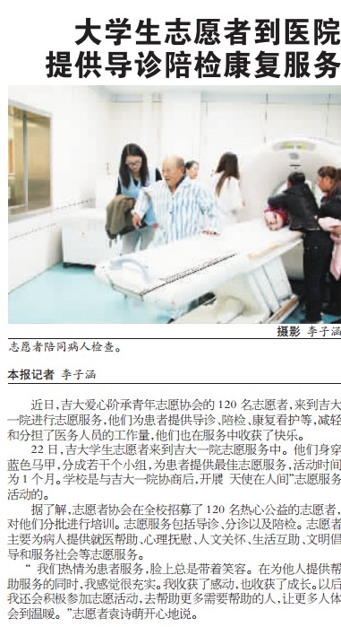 今天《长春晚报》报道香蕉视频 志愿者走进香蕉视频 一院