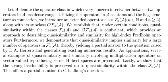 教授,博士生导师,中国数学会理事,河北省工业与应用数学学会副理事长,全国百篇优博获得者,国家优青。主要从事复几何在线性算子理论中的应用研究,重点关注Cowen-Douglas算子与Hermitian全纯向量丛的结构与分类问题,研究内容包括利用几何不变量刻画算子的酉分类与相似分类、Cowen-Douglas理论在C*-代数中的拓展与应用、算子的相似分类与Corona问题等。相关成果被Advances in Mathematics、Journal of Functional Analysis、Israel Journal of Mathematics、Journal of Noncommutative Geometry、Journal of Operator Theory、Canadian Journal of Mathematics、Illinois Journal of Mathematics、European Journal of Mathematics、Studia Mathematica等数学期刊发表,并在应邀在2018年度、2023年度IWOTA(国际算子理论会议)作学术报告,主持国家自然科学基金4项、参与重点项目1项、国际重点合作项目1项、主持河北省杰出青年基金1项。曾获2010年度全国百篇优秀博士论文奖励、2013年度教育部自然科学二等奖(第二完成人)。