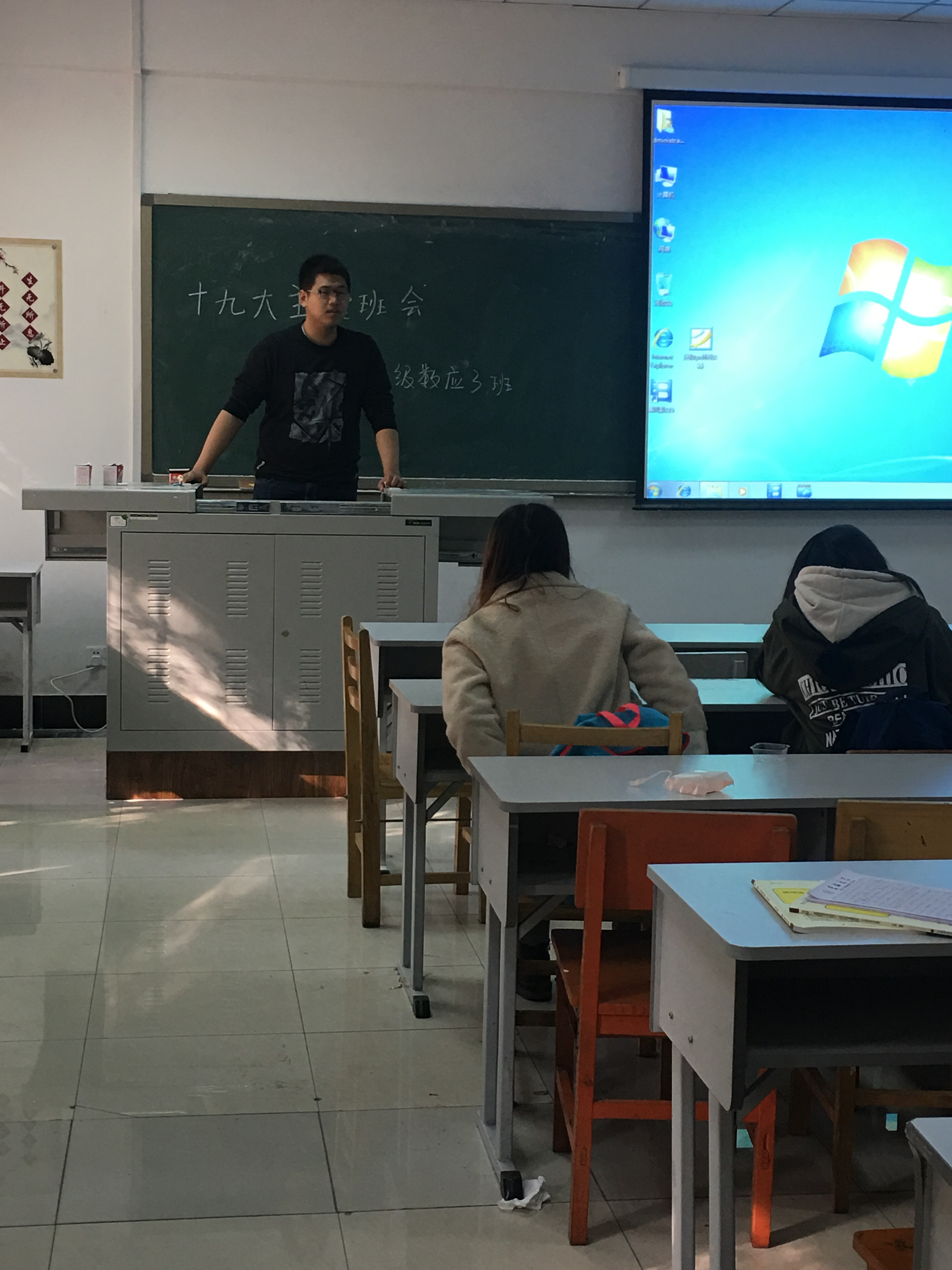 班会开始,班长赵中源与团支书司彤对十九大的重要意义和政策进行了介绍。为同学们播放了习近平总书记讲话的精简视频,看完后大家都受益匪浅,深刻的认识到了我国目前所处的阶段于主要矛盾的变化。完成后组织同学们进行了讨论,概括十九大中我国政策的变化。班级代表刘俊鹏进行了发言,简述自己在习近平总书记讲话中找到的我国新的决策与政治思想的创新。最后,班长进行了总结性发言。