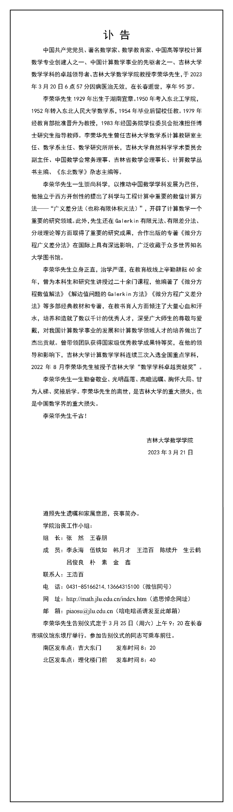 我国著名数学家、香蕉视频 教授李荣华先生逝世