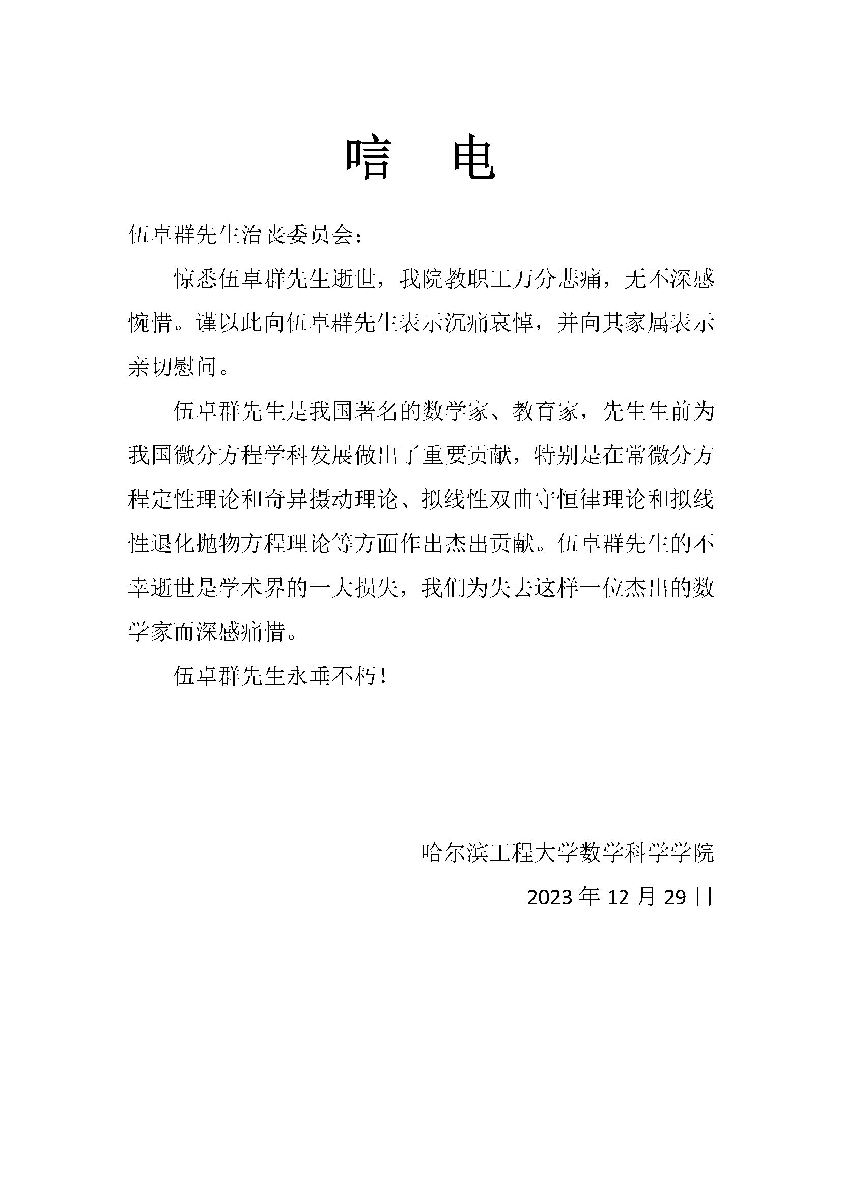 哈尔滨工程大学数学科学香蕉视频 唁电