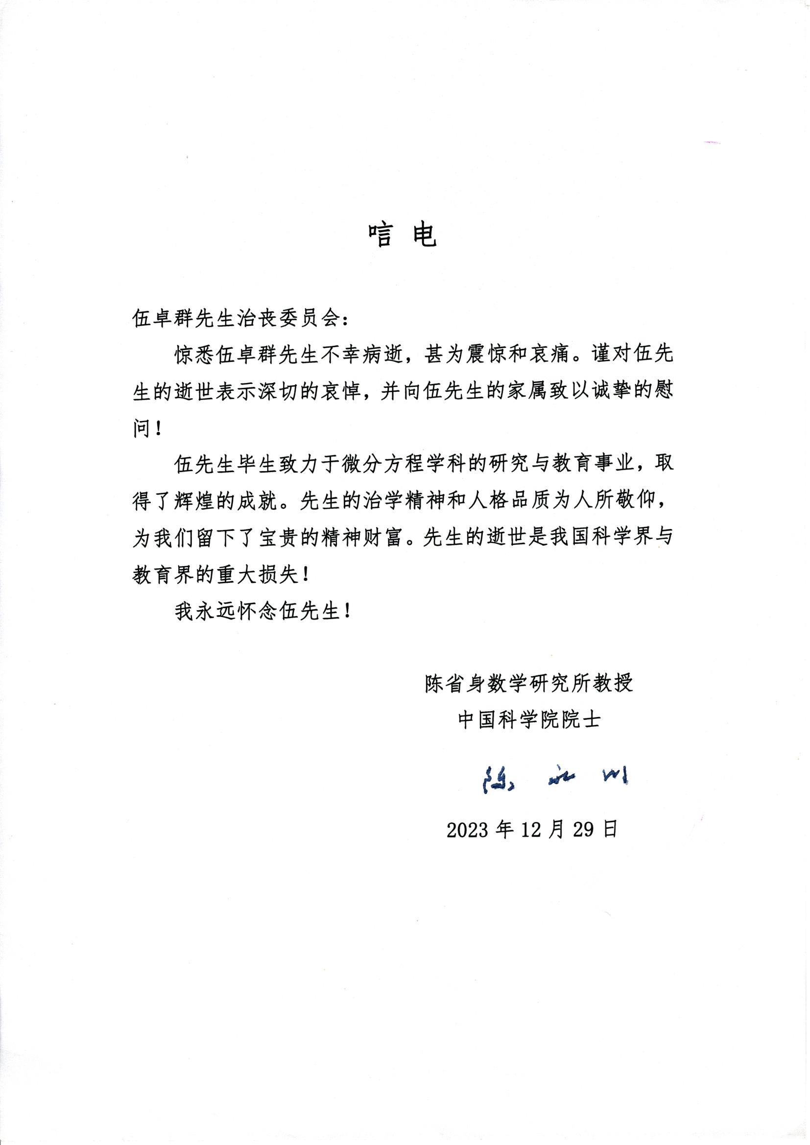 中国科香蕉视频 数学与系统科学研究院席南华院士悼词