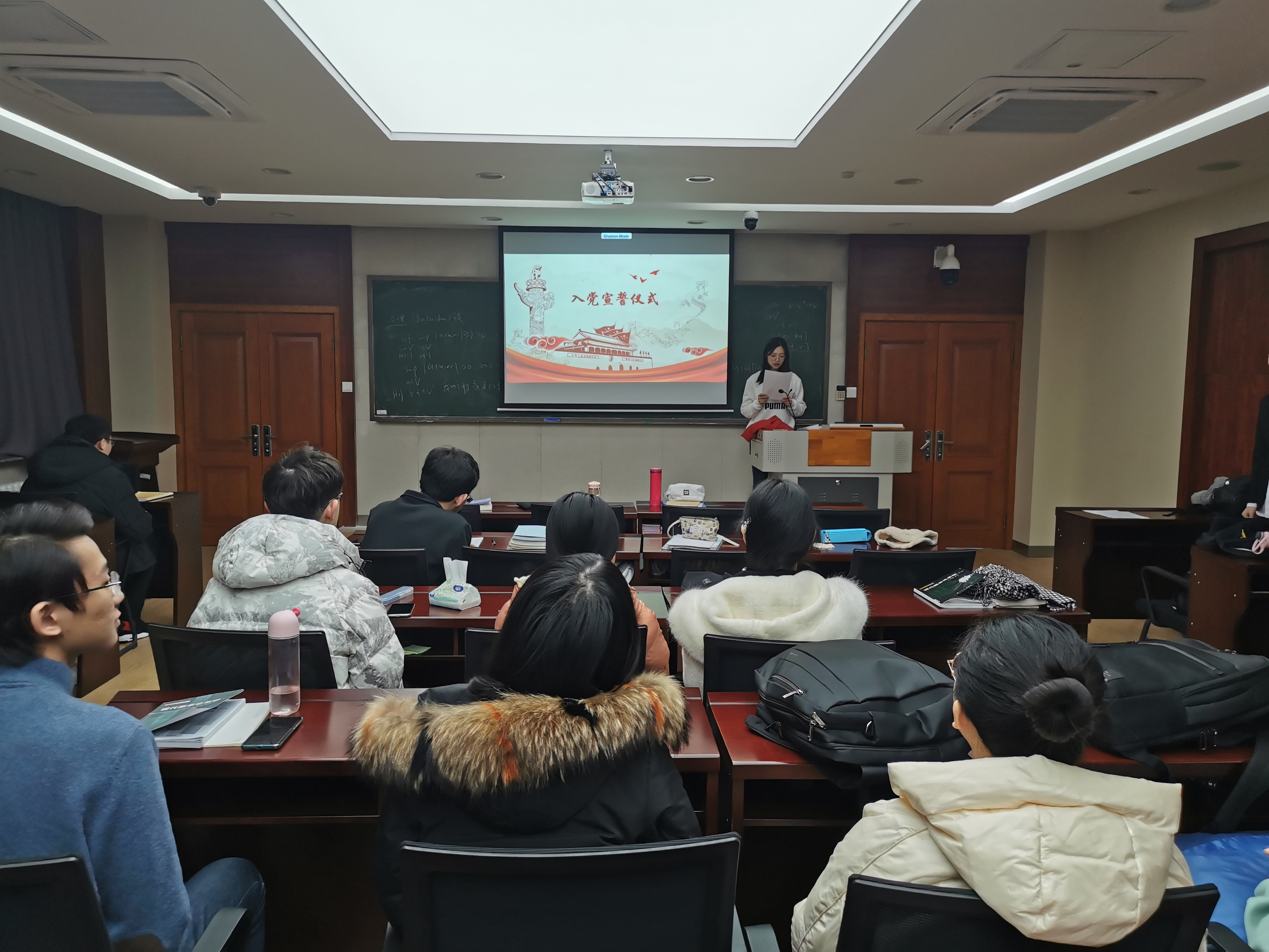 香蕉视频 本科生党支部于2020年1024日中午在数学楼报告厅举行入党宣誓仪式。参加入党宣誓仪式的为本科生党支部全体党员、预备党员,支部所署入党积极分子、发展对象列席会议。