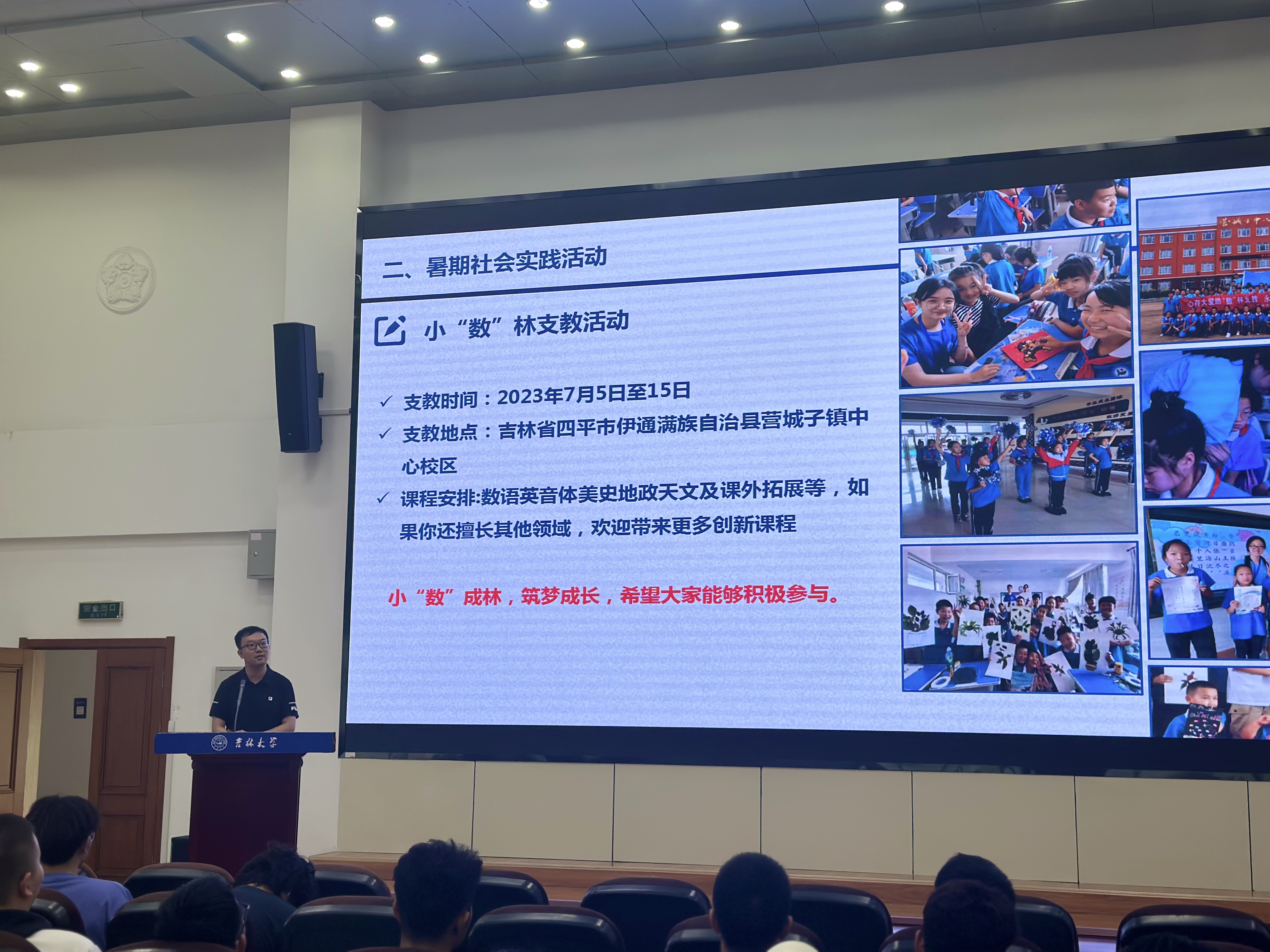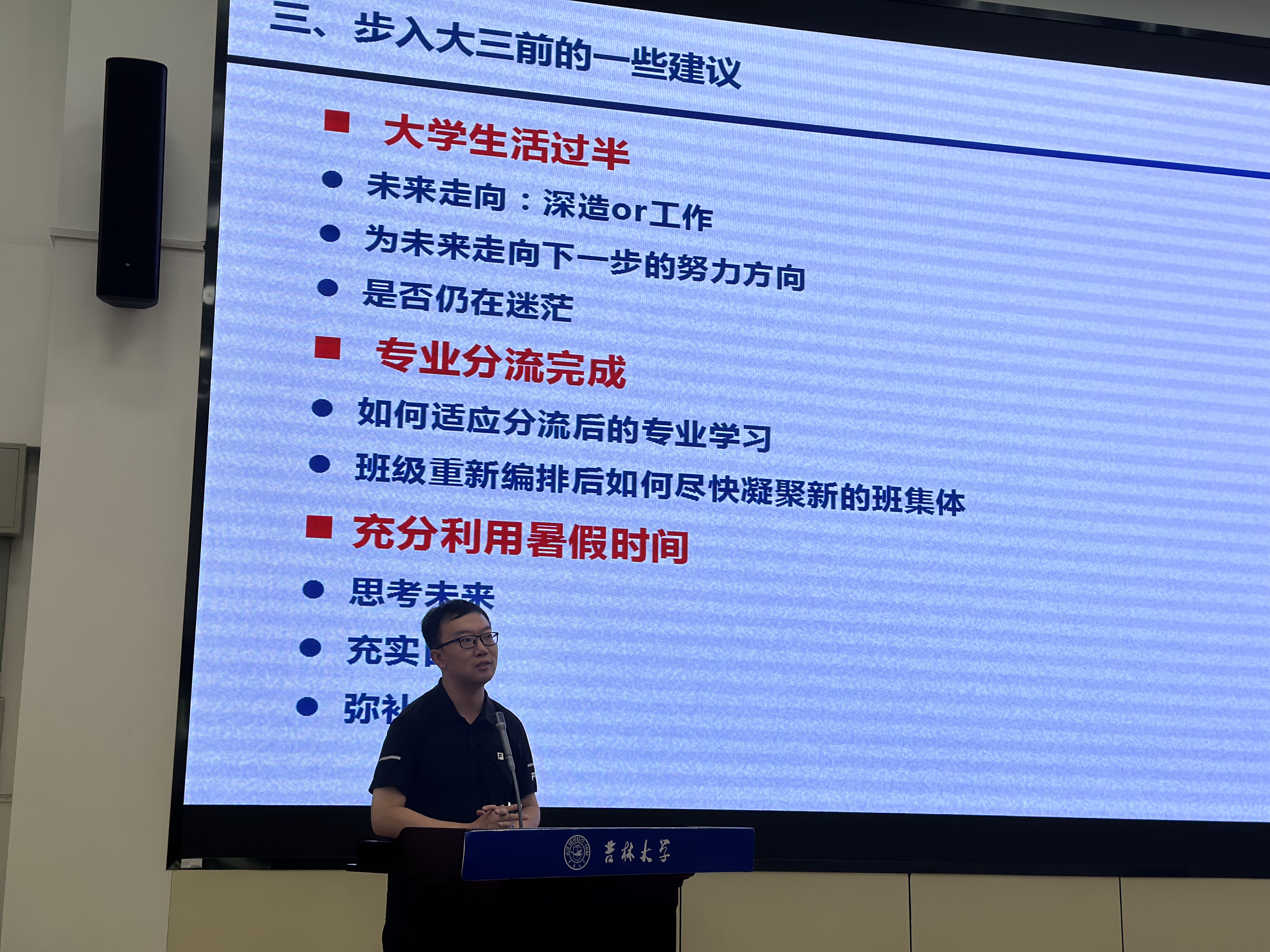 会上,陈晓宇老师带领全体同学共同学习了《香蕉视频 本科学生违纪处分规定》《香蕉视频 本(专)科学生考试纪律规范》等相关规定,并通过警示案例,向大家阐明违纪行为的严重后果,强调了学生违纪及解除处分文件将存入个人档案。随后,陈晓宇老师为全体同学介绍了香蕉视频 暑期社会实践活动的相关安排,讲解了香蕉视频 课外八学分的有关规定,并重点向全体同学宣讲了香蕉视频 传统暑期社会实践项目——小“数”林支教团,邀请有兴趣的同学积极参与。最后,结合2021级全体同学即将进入大三学习阶段的时间节点,陈晓宇老师为大家提供了一些步入大三前的建议,一是希望大家能够尽早明确未来走向并为之实施努力;二是希望大家能够尽快适应专业分流后新的班级环境及新的学习内容;三是希望大家能够充分利用暑期时间来思考未来、充实自我并弥补不足。