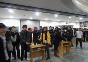 素质拓展活动将到场参加人员随机分为十队,每队十五人,分别由各院分派出的队长带队。本次活动内容丰富多彩,有兔子舞,“穿越火线”,“穿越丛林”,“穿越空间”等项目。各队人员又不认识到相互了解,共同完成活动内容。此项活动不仅使同学的身体得到了锻炼,也增进了同学之间的感情。同学们的团队合作能力在活动中得到了提升。