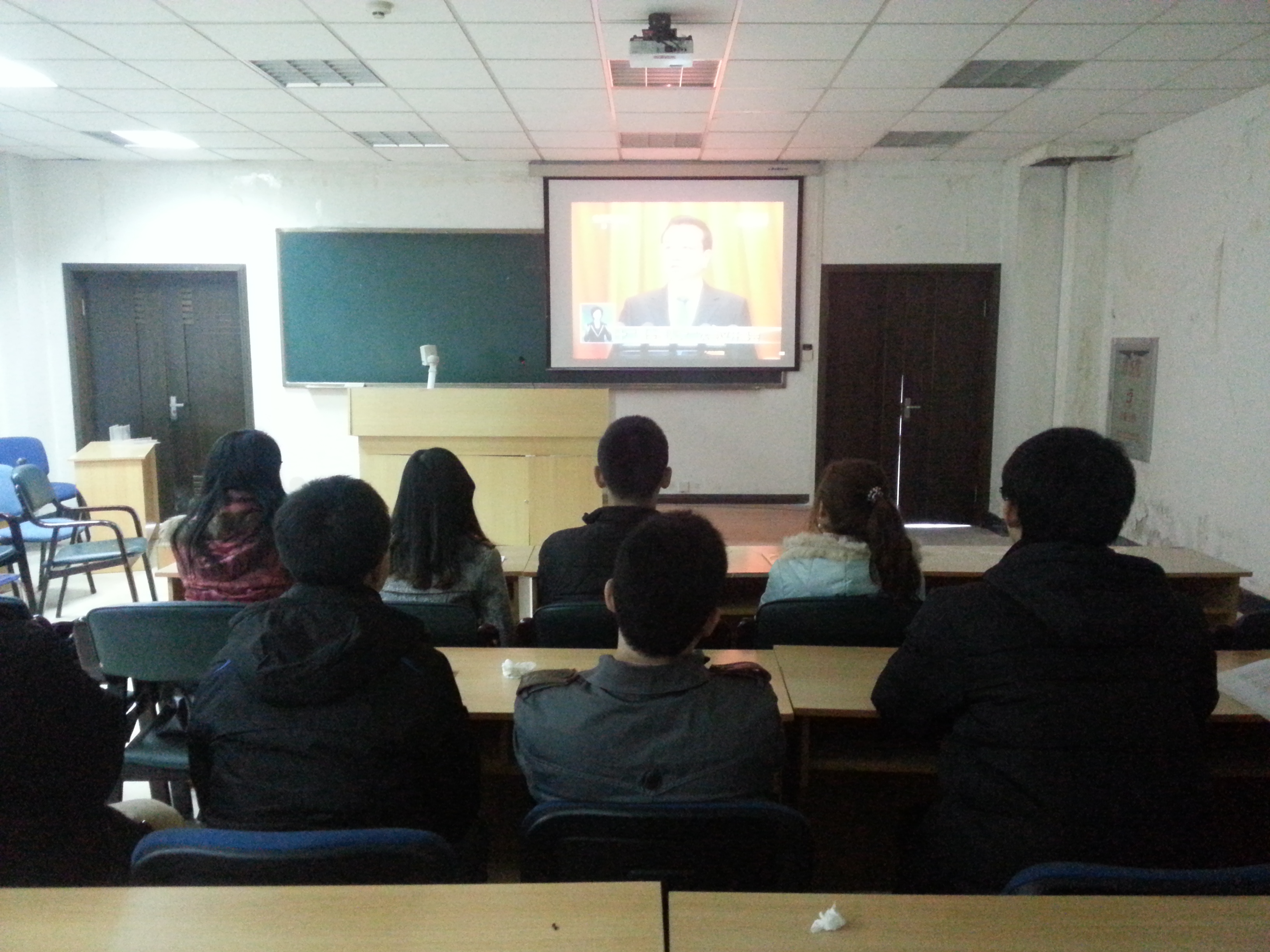 观看过程中,学生干部和党员认真做了学习笔记。李克强总理谈到雾霾天气,提出要像对贫困宣战一样坚决向污染宣战;谈到食品安全问题,提出要用最严格的监管、最严厉的处罚、最严肃的问责,切实保障“舌尖上的安全”;谈到要继续向贫困宣战,说绝不能让贫困代代相传;报告还提到政府工作的根本目的,是让全体人民过上好日子,会让每一个身处困境者都能得到社会关爱和温暖。