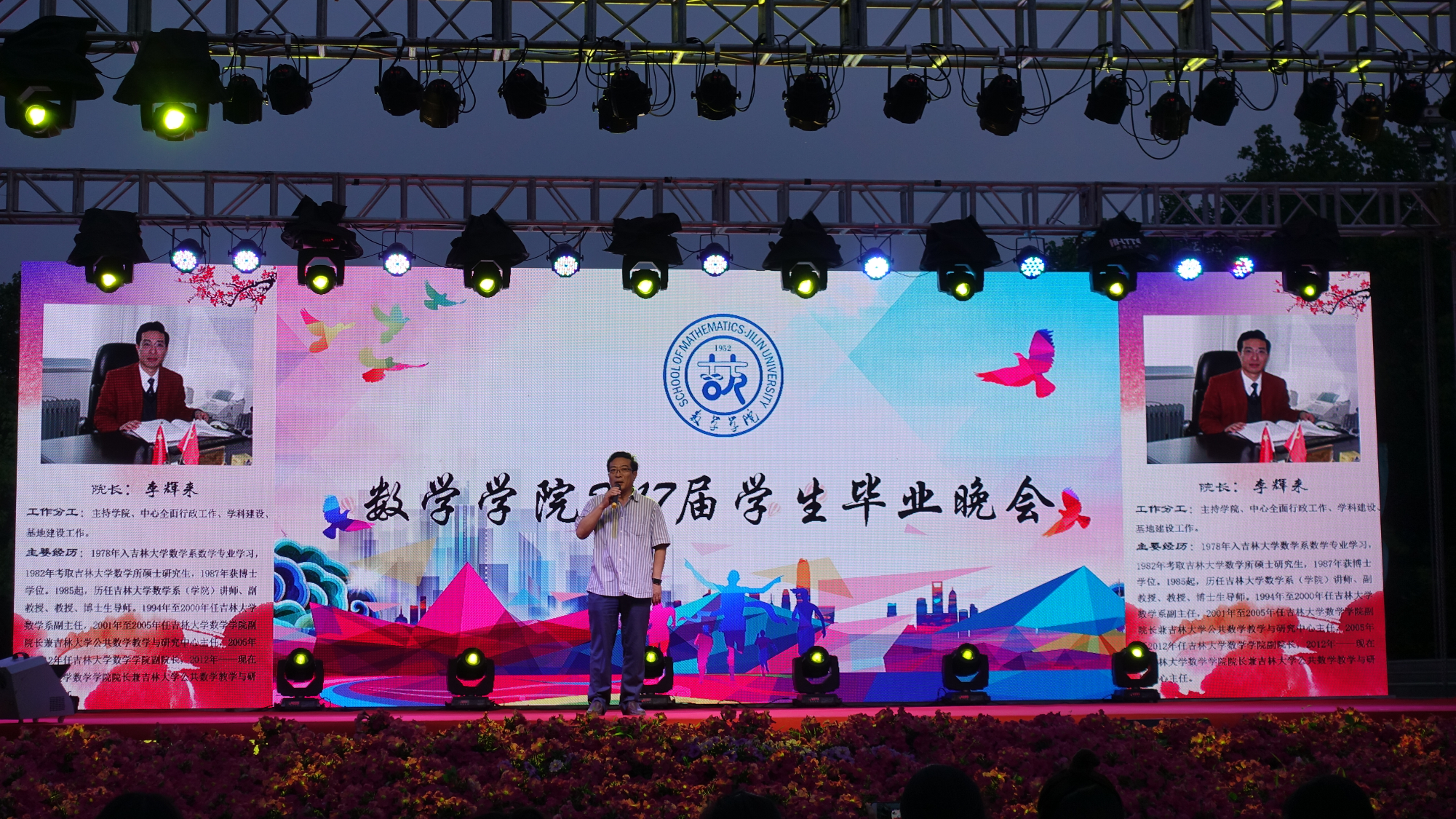 晚会在主持人精彩的介绍后开始,许多节目令人印象深刻,其中张凯老师和2017届本科毕业生阚婷婷带来的《喜欢你》表达了浓浓的师生情,2017届本科毕业生陈龙禹演唱的《暧昧》将气氛带向高潮。接着,2017届本科毕业生梁警琦等带来的舞蹈《let’s play now》引得满场欢呼,还有计算二班带来的《十年》令人追忆过往。最后,一段毕业VCR引人入胜。晚会组织有序,会场气氛良好。