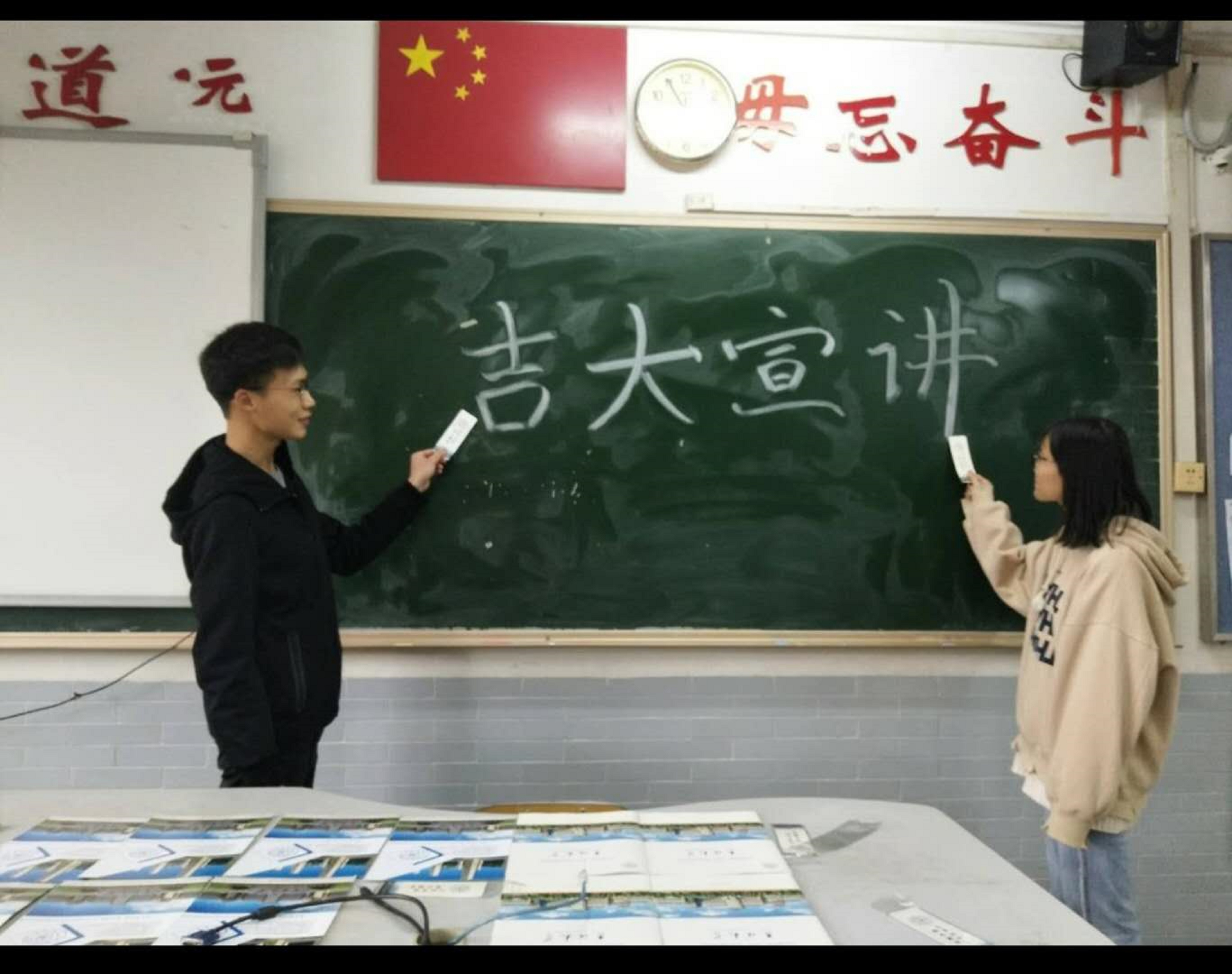 宣传册,在准备宣讲过程中家长和学生都十分认真的翻阅。以临朐中学为例,带领宣讲的同学带队在报告厅向母校高三学生宣讲香蕉视频