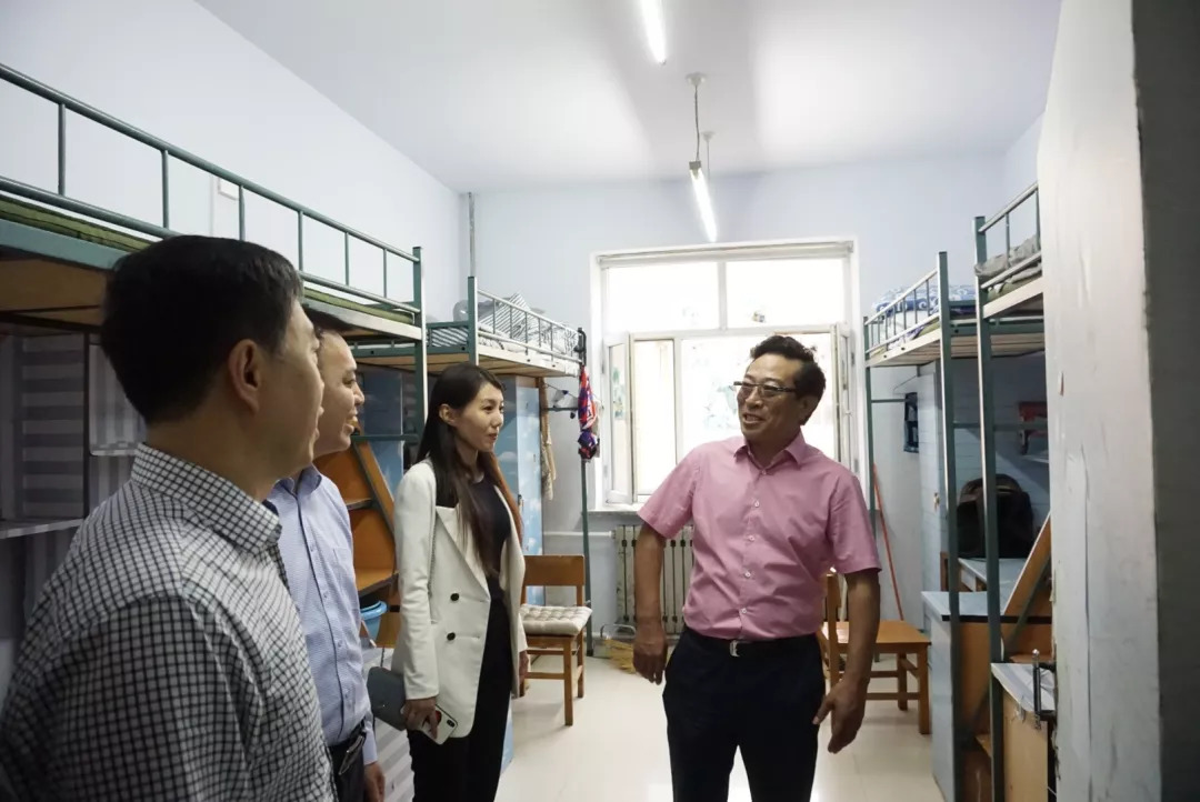 领导和老师们分别来到大学城2公寓和3公寓看望新生。此次出席的领导和老师是有院长李辉来老师,党委书记李晓光老师,副院长史少云老师,党委副书记兼纪委书记王欢老师,副院长陈续升老师,党委副书记兼副院长范庆文老师,新生辅导员曹馨月老师。
