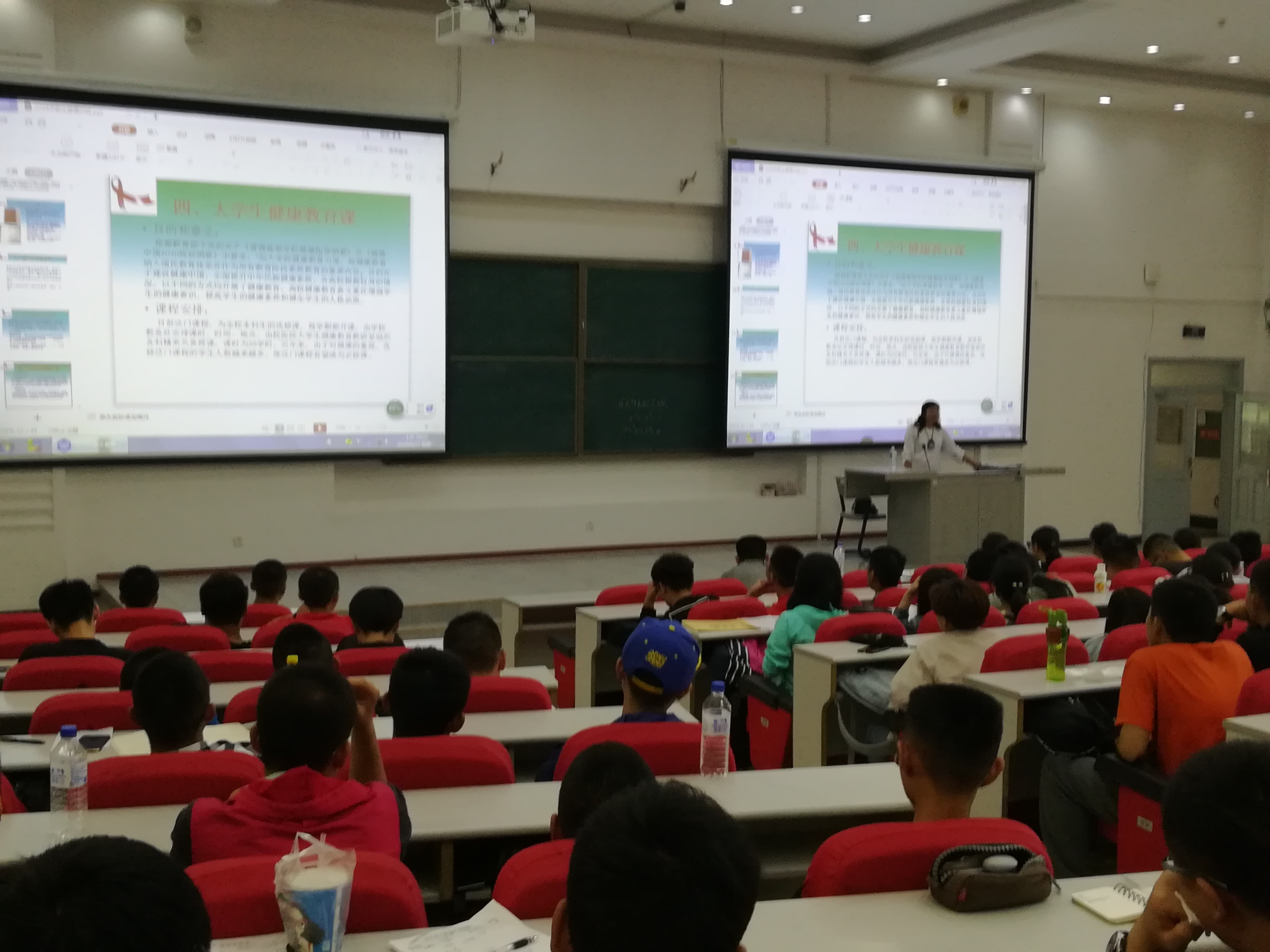 2018年8月27日上午10点,香蕉视频 邀请到校医院的吕红君老师为2018级新生进行卫生保健教育。吕老师重点强调了健康安全的重要性,介绍了一些常见的传染病及其传播方式,并面向大多数学生群体,针对艾滋病和乙肝等传染疾病的认识误区,做了详细地解释和纠正。讲座中,吕老师着重讲了如何避免和及时发现疾病,对学生日后的卫生保健提出了一些建议,并向介绍了就医方法和途径。