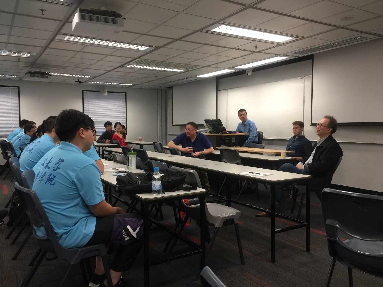 的发展过程,耐心的回答同学们的问题,港科大的老师与师兄师姐们与同学们热情交流学术以及未来发展等各方面的问题,对于正处于毕业之际的我们,起到了十分大的帮助。在愉快开心的氛围中,学术交流小组的第一天旅程画上了圆满的句号。