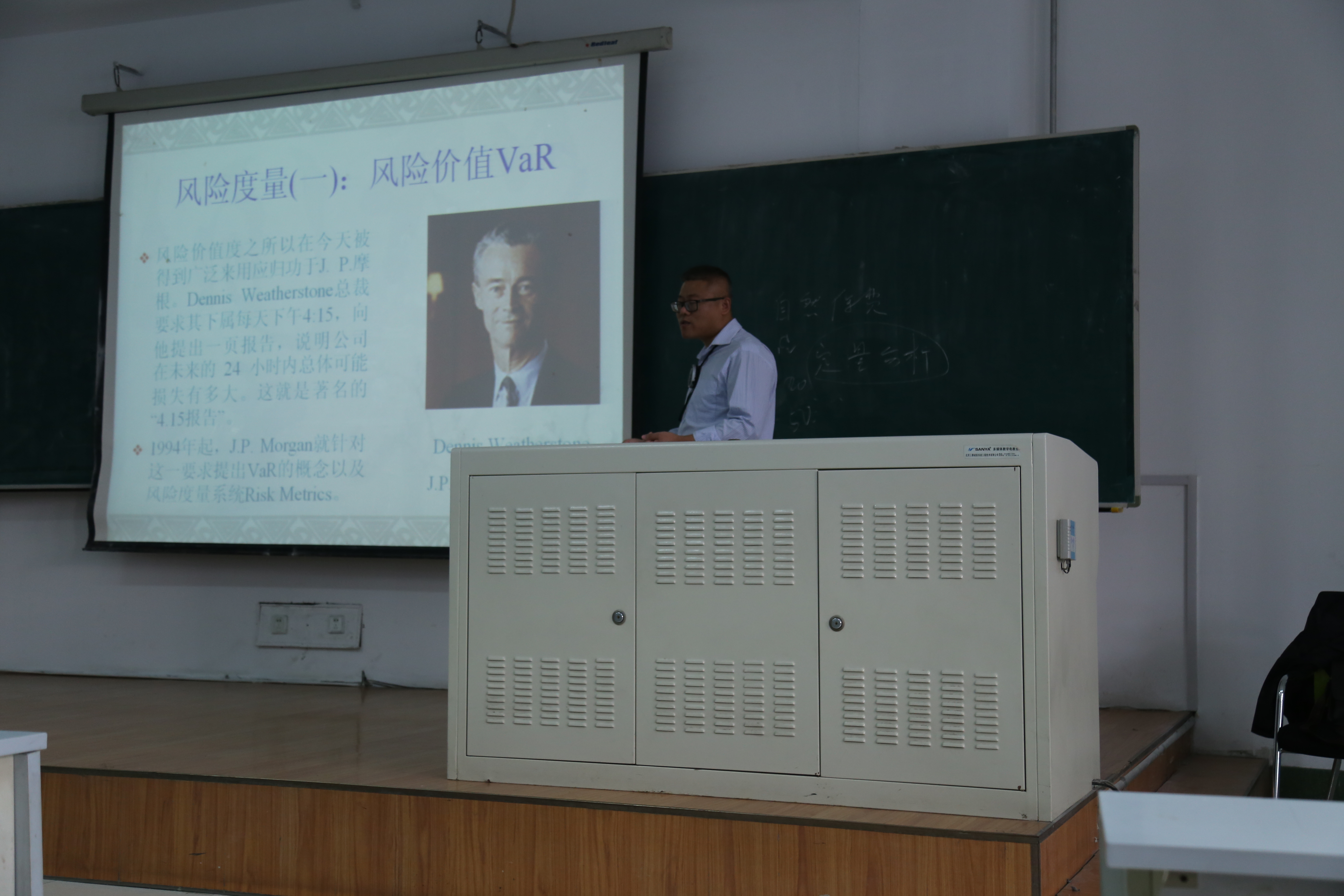 首先,程建华老师引用书中的内容作为讲座的开端,随后讲解了保险精算学的历史以及发展,介绍了有关学科,如:概率统计,随机方程等学科,之后,老师根据寿险和非寿险两种不同的保险分类,分别给出了几种风险类型。程老师语言幽默风趣,不时举出一些生动形象的例子,如股神巴菲特投资可口可乐的故事。最后,程老师还给同学们提出了建议,希望同学们能敢于表达自己不同寻常的看法,并且建议有兴趣的同学努力学好相关基础学科,成为保险精算领域的未来领袖。