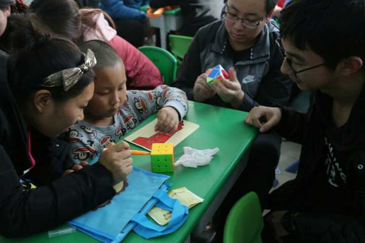 首先,工作人员为每位孩子准备一个帆布袋,志愿者们和孩子们一起用事先准备好的水彩颜料和彩色记号笔在帆布袋上创意涂鸦,勾勒出属于自己的天地。在这个帆布袋上,孩子们可以用彩笔尽情表达出自己的想法,志愿者们更加可以通过涂鸦间接地和孩子们沟通。一个小小帆布袋,不仅可以表达志愿者对孩子们的祝福,也为志愿者和孩子们的心架起一座沟通的桥梁。接着,工作人员和志愿者和孩子们进行了“我的世界”搭积木、一起折纸拼拼图,你唱我跳等游戏活动。最后,志愿者与孩子们合影留念,并将提前准备的小礼物和与孩子们共同涂鸦的帆布袋留给孩子们作为纪念。到此,活动圆满结束。