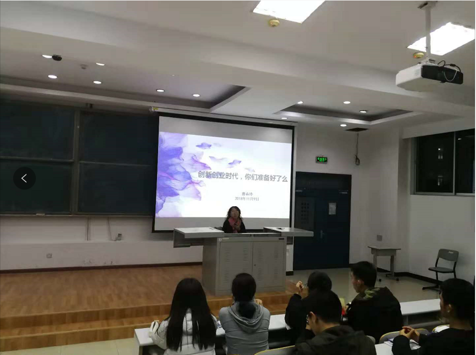 活动以讲座及交流会的形式展开,由各位主讲人从什么是创新创业,面对创新创业我们要做什么,怎样进行创业等多个方面进行演讲介绍。主讲人曹春玲老师详细地为新生讲述了创新创业的优势、创业未来走向以及如何根据自己所学专业选择创业方式等几大要点。将自己所学的创新、创业心得和大家一起交流分享,希望新生能够通过这次讲座有一个新的发展方向,做胆大、心细、有准备的大学生,学会整合对自我有用的创新、创业的信息,增进创新创业的自信力。