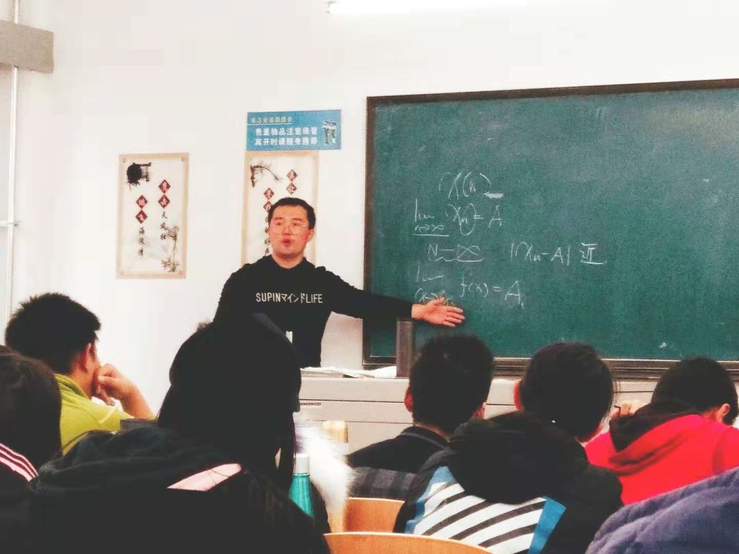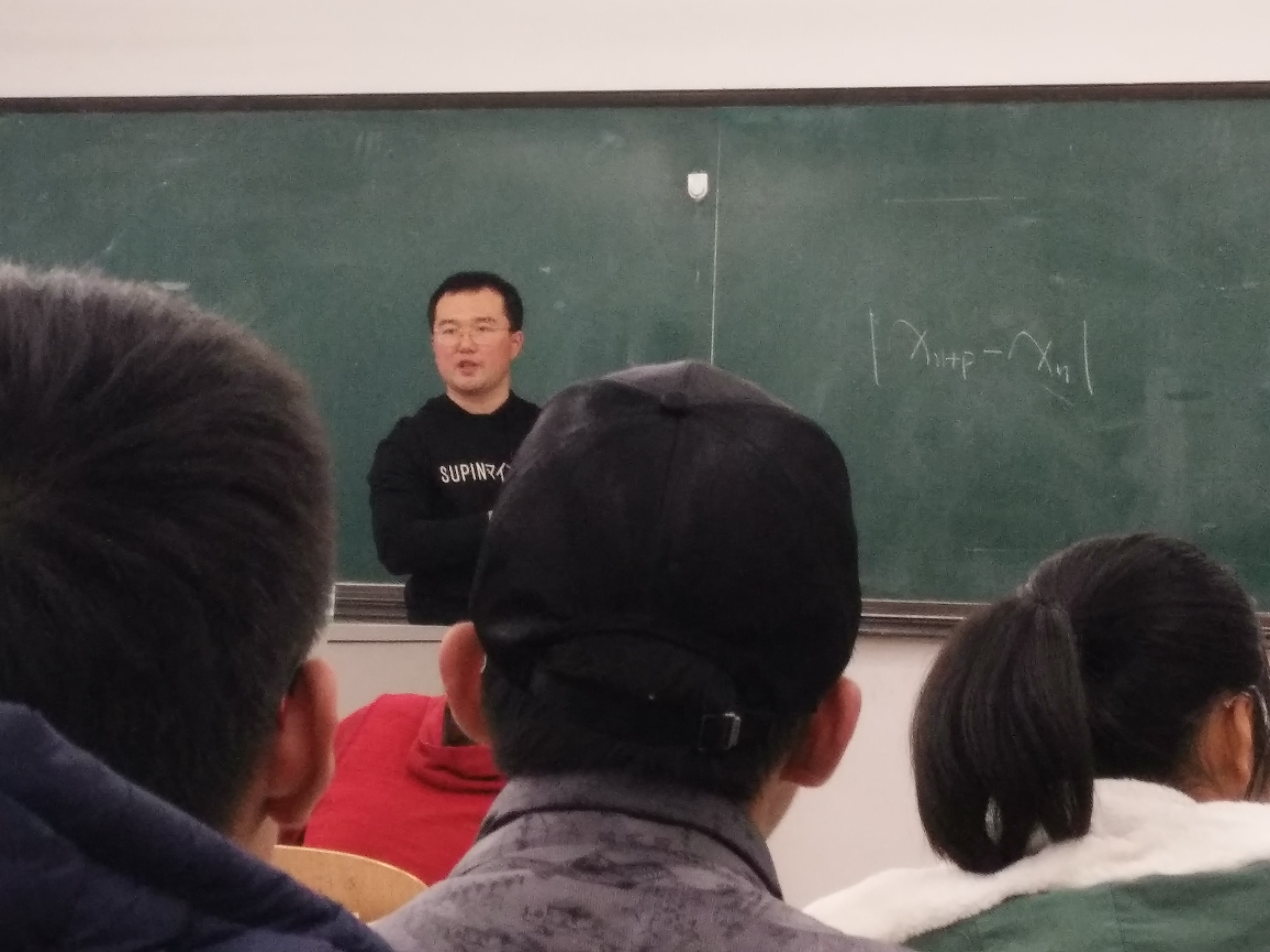 王嘉葳同学讲解得到了同学们得热烈好评,随后由宋海明老师为同学讲授了函数连续性得相关知识。宋海明老师从函数在某点连续的定义出发,接连讲述了极限和函数运算的换序问题、左右连续以及几种类型的间断点,紧接着宋老师还为大家讲述了连续函数的性质:具有局部有界性、局部保号性和四则运算法则,最后宋海明老师为同学们讲解了函数连续性的相关例题和解题思路。宋海明老师讲课生动诙谐,内容由浅入深,循序渐进,引领同学们去探索函数连续性的奥秘。同学们不仅认真听讲做笔记,还积极地回答宋老师的问题,通过同学们的发言中可以看出大家对这部分知识又有了更深刻的理解。