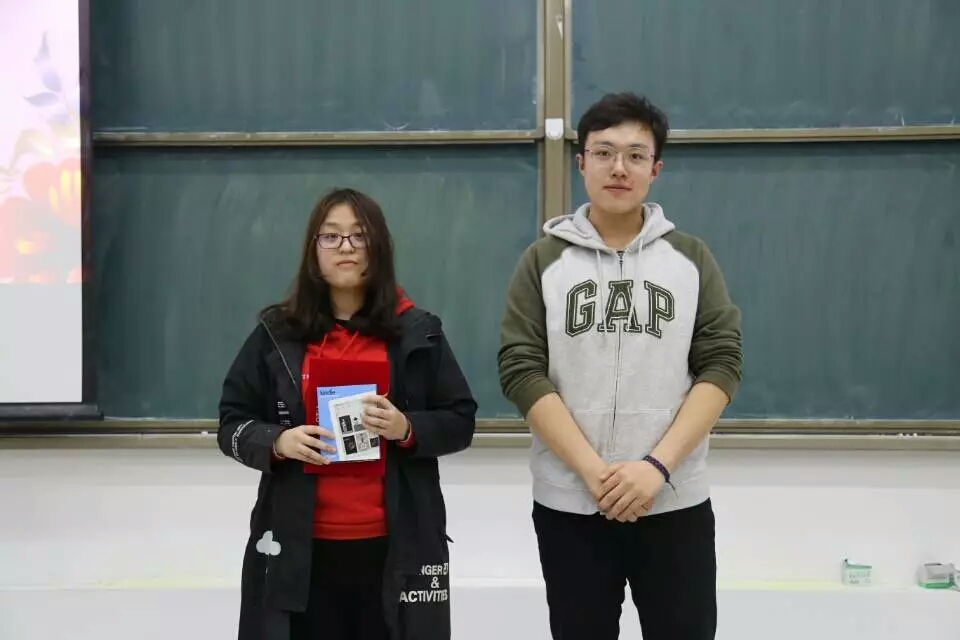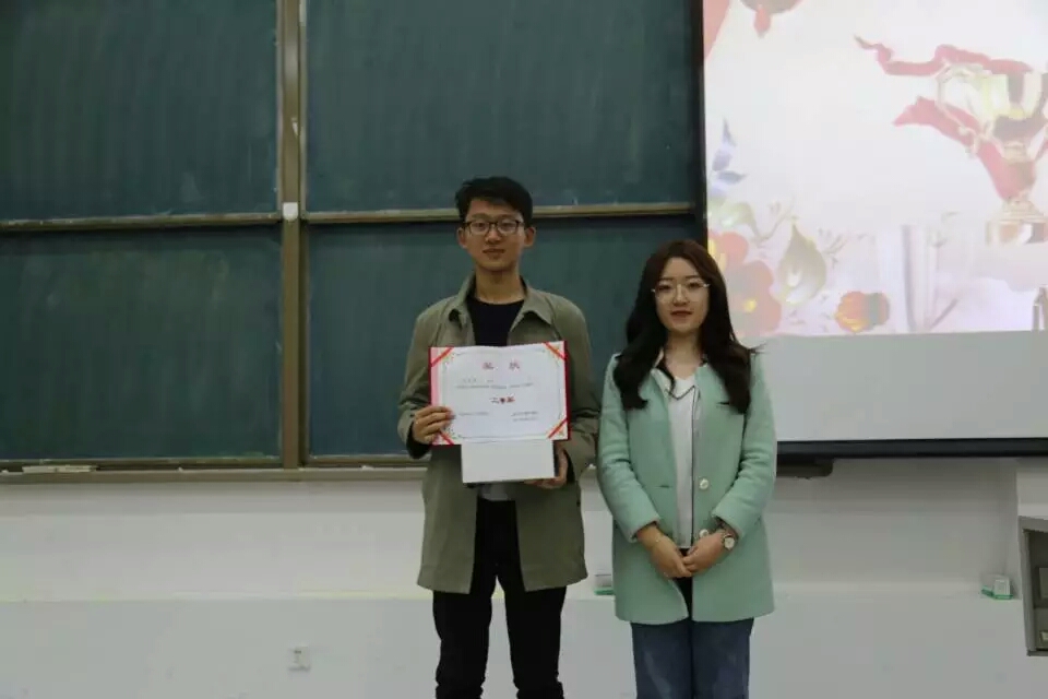 本次比赛参赛选手讲课风格各具特色,有的同学举例丰富、贴近生活,有的同学慢条斯理,从容不迫,有的同学随性恣意,别具一格;讲课内容亦是五花八门,数学分析,高等代数,空间解析几何,常微分方程等等,选手们思路清晰,表达清楚到位,并有自己的独到见解;讲课形式丰富多样,手写板书,板书或工整规范,或随性恣意;PPT辅助,PPT简洁明了,美观大方。讲台上的同学们神采奕奕,自信从容,大方得体,颇具老师风范。讲台下的观众亦是全神贯注,仔细聆听,收获颇丰。现场还设有趣味问答环节,同学们热情高涨,紧张思考,积极响应,纷纷举手回答问题。各位评委秉持着公平公正的原则为各位选手进行现场打分,评选出一等奖一名(17级马琰)、二等奖一名(18级吴岳霖)、三等奖两名(16级黄海涛 18级何易繁),分别由团委副书记郑旭东、团委副书记兼社联主席赵雯晗、新媒体中心主任兼学生会副主席王思梦为获奖选手颁奖。最后,各位评委,获奖选手及工作人员合影留念。至此,香蕉视频