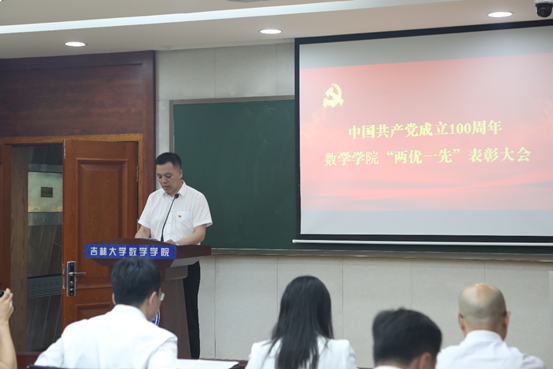 在数学楼第二报告厅召开“两优一先”表彰大会。党委副书记范庆文主持会议。