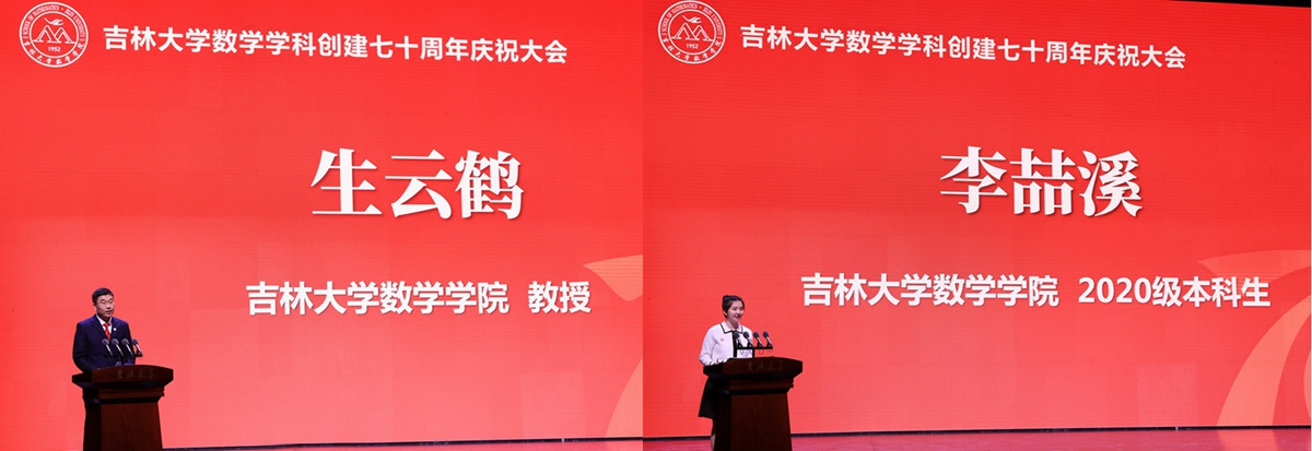教师代表生云鹤、学生代表李喆溪分别发言,他们重温历史,追忆往事,表示要秉承“求实创新 励志图强”的校训精神,践行“人比山高 脚比路长”的理想信念,以求实的态度、创新的理念、励志的精神奋发图强,以前辈们为榜样,续写香蕉视频 数学的绚丽华章,再创香蕉视频 数学的灿烂辉煌。