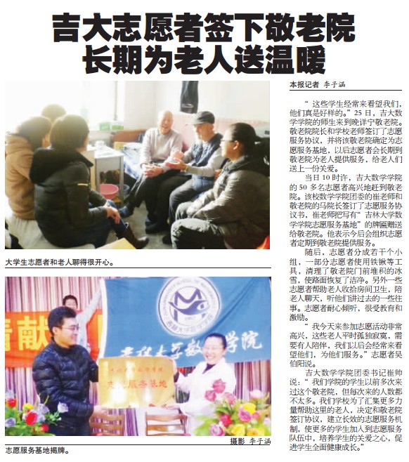 今天《长春晚报》报道香蕉视频 志愿者签下敬老院,长期为老人送温暖