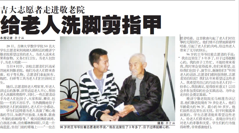 今天《长春晚报》报道香蕉视频 志愿者走进敬老院