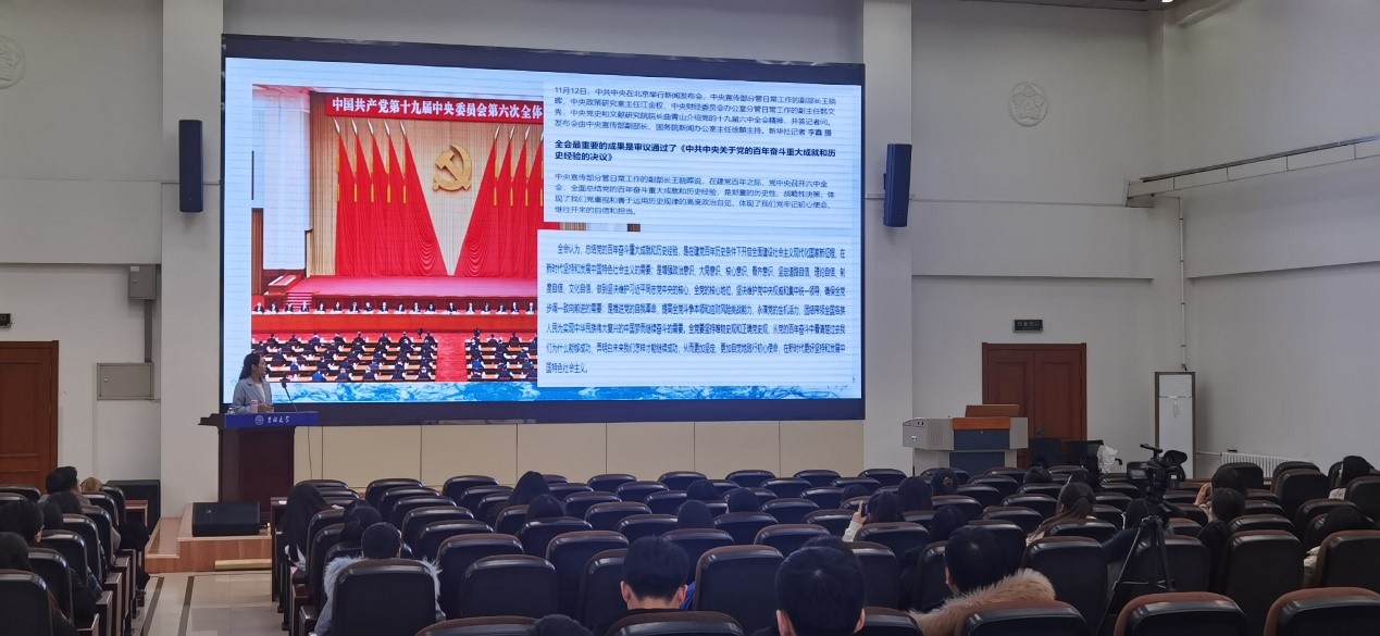 博士生讲师团讲师李天娇博士于数学楼二楼报告厅进行了十九届六中全会精神学习教育宣讲。本次宣讲的主题为“总结百年奋斗史•接续赶考新时代”——新中国以来国家领导人新闻发布的机制演变与基本经验”,香蕉视频
