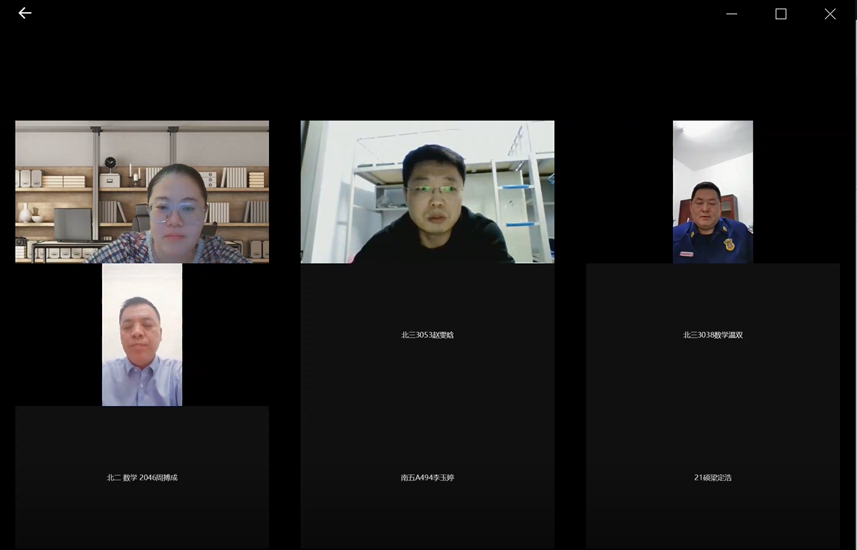 党委副书记陈续升老师与参会同学沟通了在校的学习生活情况,并鼓励大家要保持良好心态,发扬踏实真诚,坚韧担当的数学精神,共克时艰,共同努力,争取早日在校园相聚。
