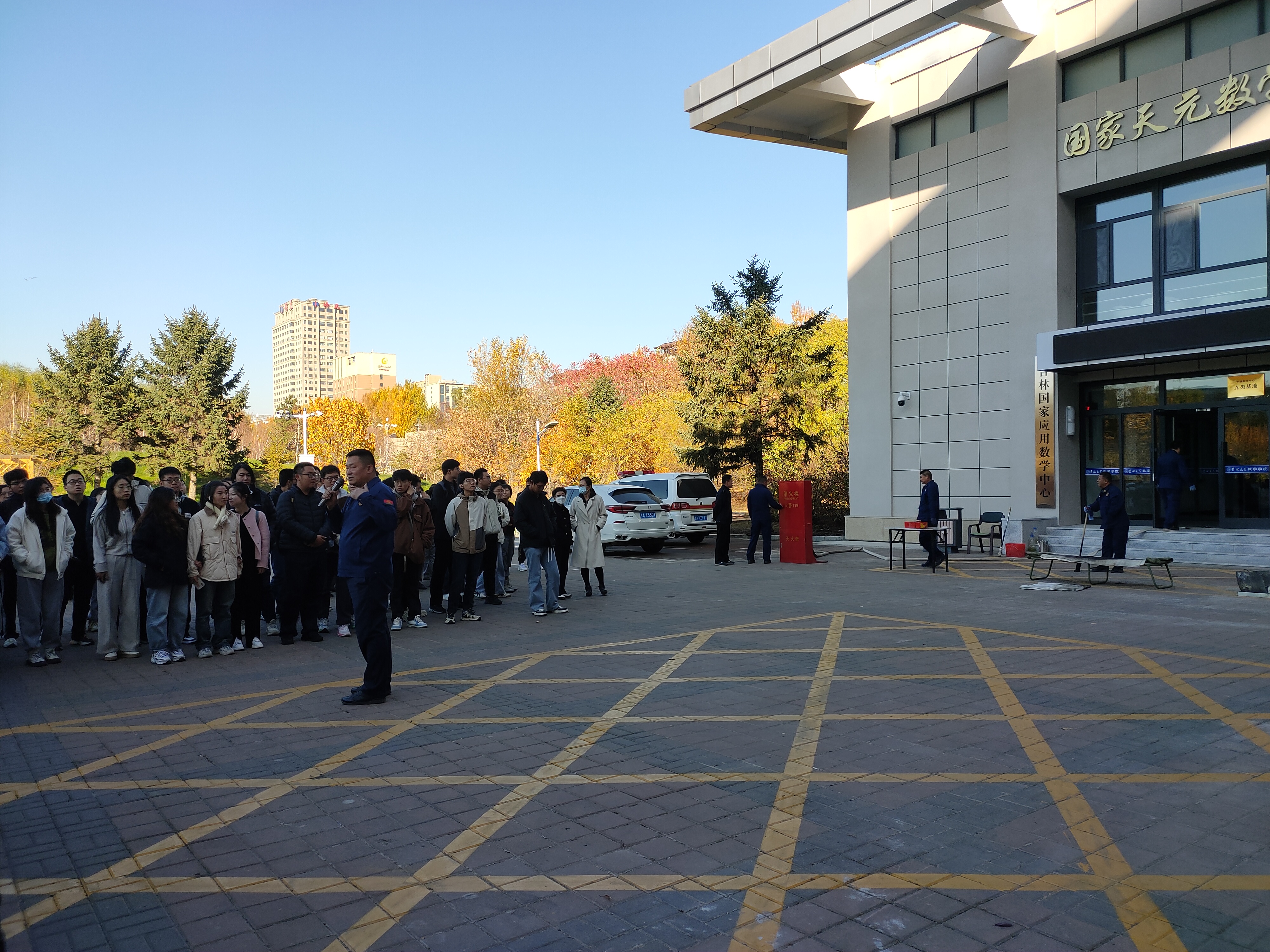 随后,保卫处模拟了火灾现场的浓烟和烈火,全体学生安全有序地疏散到楼前场地。在室外,保卫处的消防干事们细致讲解了各种类型的消防防毒面具、灭火器、灭火毯的用处与使用方法,先由保卫处的消防干事进行演示,再让部分学生志愿者亲身体验,加深了对各类消防器具的了解和使用技能。