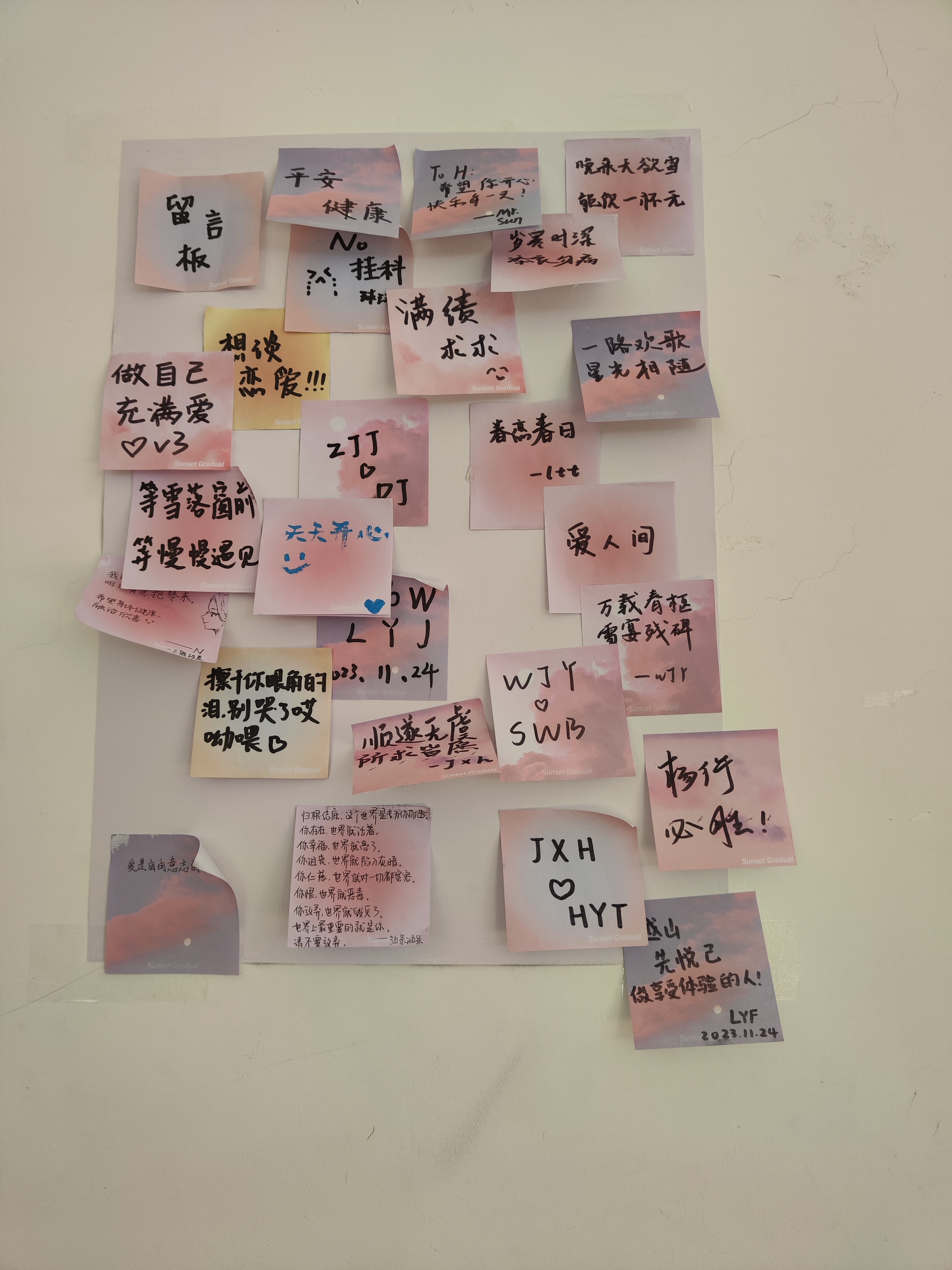 在各位同学完成自己的作品之后,便纷纷来到教室前面,领取工作人员精心准备的便利贴,随后同学们或者在便利贴上写下自己的愿望,由工作人员将这些愿望贴在心愿墙上,或者写下对陌生人的祝福,附在自己作品的后面,由工作人员连同作品一起送至长春市特殊教育香蕉视频