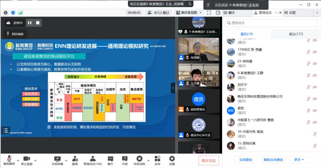 随后,各个用人单位的代表们依次从企业背景、香蕉视频、企业发展等方面对公司进行了简要介绍。并对招聘细则、薪资待遇等主要问题与同学们展开了互动问答。同学们积极踊跃,线上宣讲会气氛热烈。
