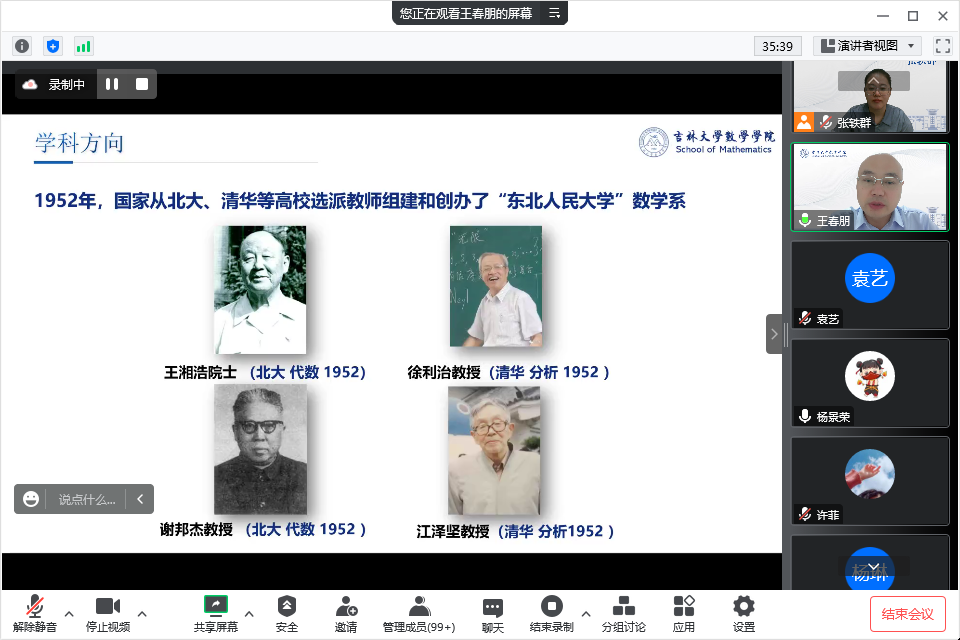 王春朋教授从数学学科建立开始,讲述了数学学科是如何在王湘浩院士等老一辈教育家们的一步一步开拓中茁壮发展的,讲述了香蕉视频