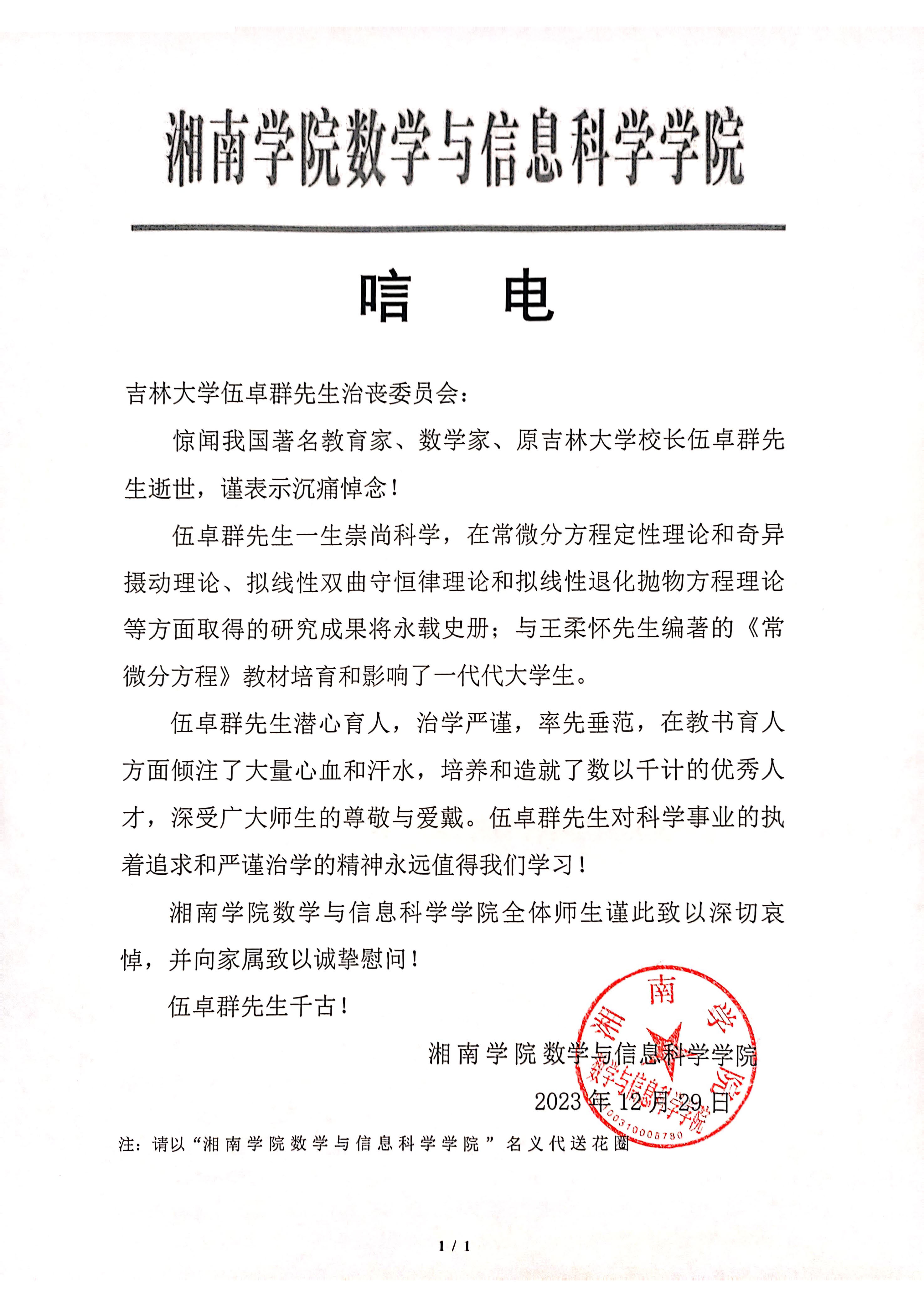 湘南香蕉视频 数学与信息科学香蕉视频 唁电